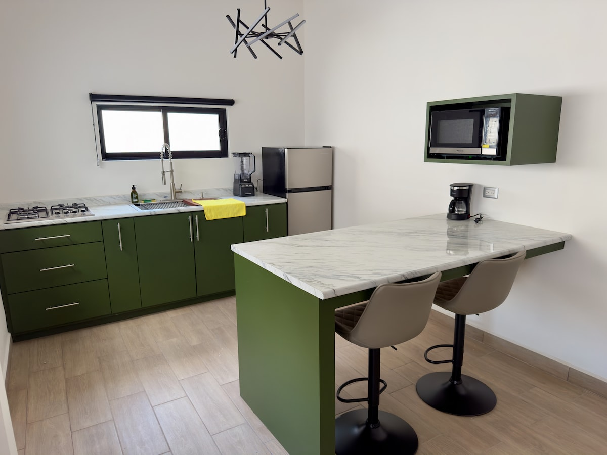 El Departamento Blanco #1 es muy cómodo, completamente nuevo y tranquilo. Se encuentra en la primer planta y es un excelente lugar para hospedarse, ya sea por negocios o placer.