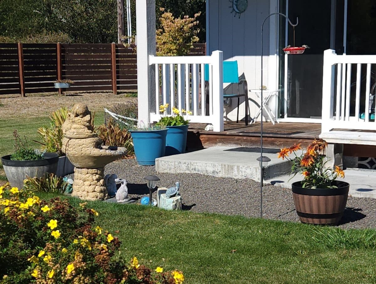 Nuestra casa se encuentra en una tranquila propiedad de 3 acres a solo 5 millas de la ciudad. Tenemos huertos, frutales y docenas de arbustos de bayas. ¡Tenemos unas vistas increíbles de las montañas Olímpicas y nuestro vecino es una granja de lavanda! El apartamento estudio es un lugar luminoso y soleado que está unido a nuestra casa, pero tiene su propia entrada. Es un lugar maravilloso para los visitantes de la zona, ya que está cerca del agua, las montañas y las granjas de lavanda. Estamos a poca distancia en ferry de Victoria y Seattle.
