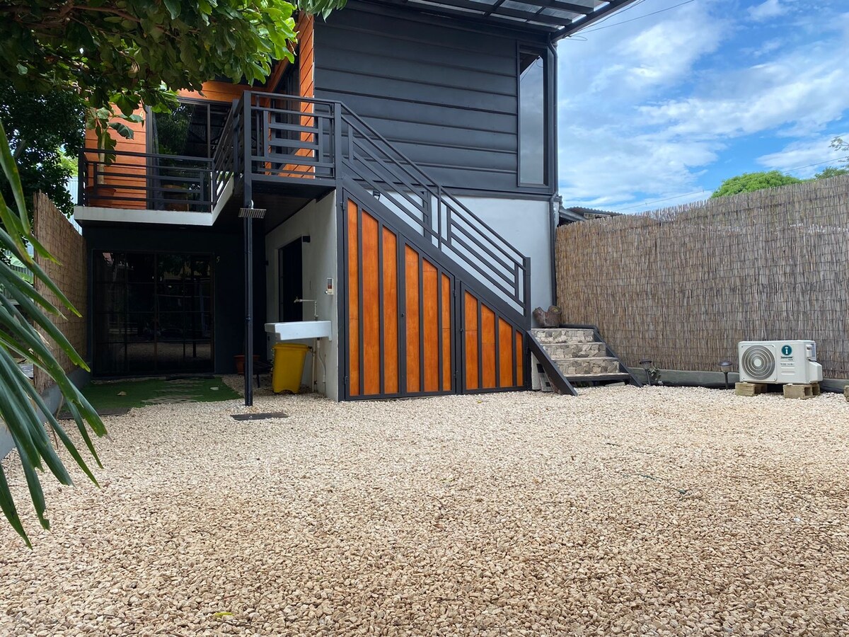 Es un apartamento luminoso de 90 m2 construido en una única planta con 2 habitaciones y terraza privada con vista al jardín interno. Está completamente equipado para estadía vacacional, con piscina y solárium en jardín compartido entre huéspedes. ¡La playa está a 10 minutos caminando! Y en el camino, está el centro comercial. En Muna Tamarindo quienes se hospeden concretarán su deseo de estar cerca de las mejores playas de la ciudad y de tener un lugar con todas las comodidades al regresar.