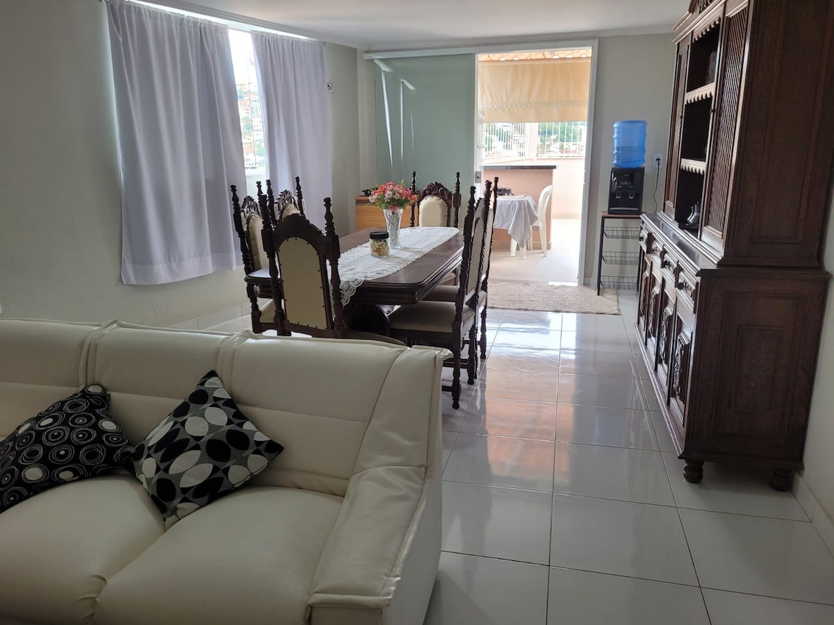 Disfruta de una estancia excepcional en este espacioso apartamento de 3 dormitorios que incluye 2 habitaciones en suite y un dormitorio acogedor. En total hay 3 baños, una generosa habitación con TV INTELIGENTE de 55’y WiFi, es realmente acogedora. La cocina completa tiene refrigerador, Airfryer, juego de ollas y sartenes, cubiertos y electrodomésticos de comedor y placa de inducción. Además el apartamento cuenta con dos áreas al aire libre con impresionantes vistas al río Doce, el centro de Colatina y Ponte Florentino Avidos.