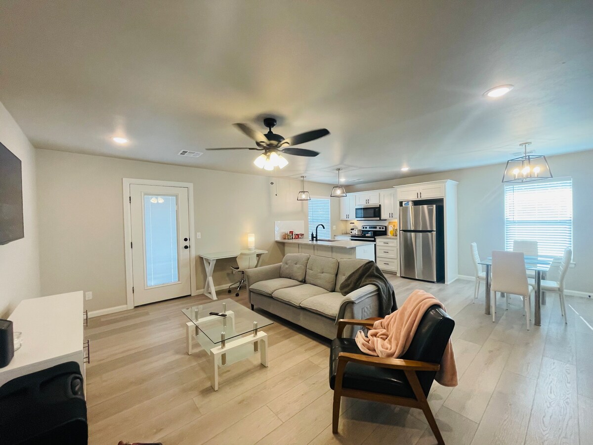 Te damos la bienvenida a The Apartment, lejos de las concurridas calles de la ciudad, con entrada privada, a las afueras de Owasso. Tu entrada privada se abre a una sala de estar con TV inteligente, cocina totalmente equipada con isla y lavandería. El espacioso dormitorio tiene un colchón de espuma viscoelástica tamaño queen y baño privado con ducha a ras de suelo. El invernadero adjunto con calefacción y aire acondicionado es ideal para observar la vida silvestre. Estamos en 2 acres boscosos a solo un par de millas de tiendas y comercios, en un barrio rural seguro y tranquilo.