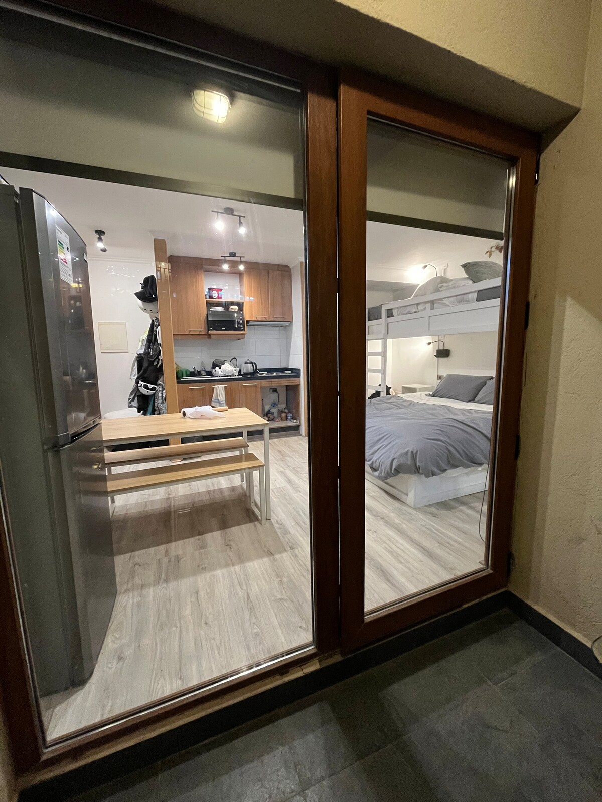 Studio ideal para familia, habilitado para 4 personas comodas, ubicado a 30 mt de las pistas de ski, telesilla , góndola , andariveles , restaurantes, ski rental, minimarket y servicios. Recién remodelado cuenta con una cama king y una cama nido para 2 personas. Estacionamiento cubierto con entrada directa al departamento, lockers y guarda ski , ademas de recepción 24 horas. El departamento tiene una ubicación privilegiada y esta equipado con todo lo necesario para una grata estadia.-
