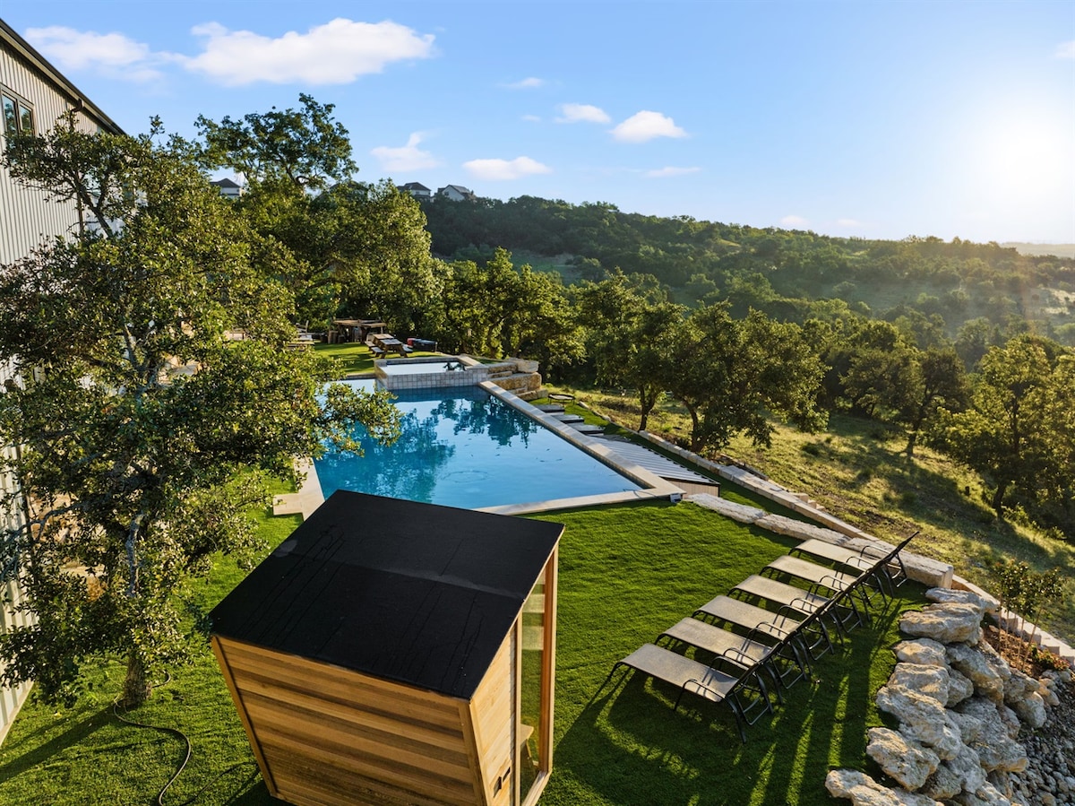Private natural oasis with 3 cabins, private pool, cedar hot tub, and private observation deck. The private 8-acre property is located in the heart of hill country, with amazing panoramic views. Newly remodeled with thoughtful design and furnishings. Fully solar power with grid and battery backup. *ALL 3 cabins are included in the price* NOTE: The drive ends with a 1-mile gravel road. These are common in hill country and cars of all sizes are fine... just drive slowly (10 mph)