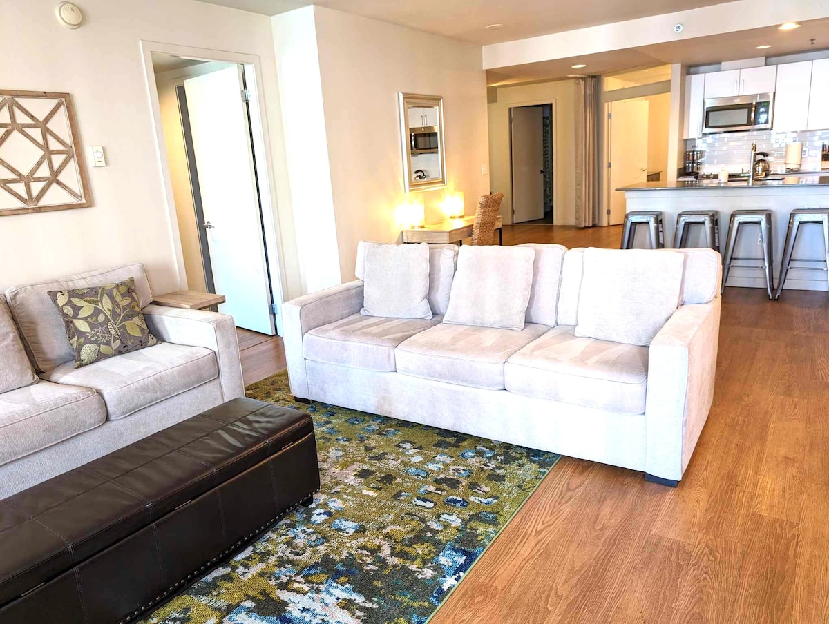 Bienvenido a Harbor Steps, ¡el mejor edificio y ubicación de todo Seattle! ¡Este apartamento en el piso 15 en Harbor Steps tiene preciosas vistas de la ciudad! Esta unidad de 2 dormitorios, 2 ba + estudio (con capacidad para 8 personas, 6 adultos como máximo) será tu hogar dulce hogar durante tu estancia en Seattle. Ya sea que estés en Seattle por negocios, para hacer turismo o para visitar a familiares o amigos, te ENCANTARÁ este apartamento, las comodidades del edificio y la ubicación de Harbor Steps. En verdad, no hay nada que se le compare.