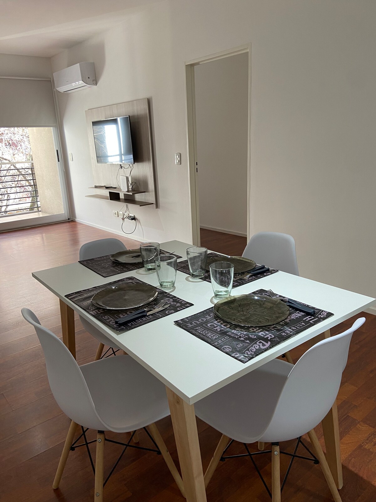 Confortable departamento luminoso, equipado para 4 personas, en un tercer piso con balcon. El edificio cuenta con piscina, sauna, laundry y el departamento con calefaccion y agua caliente central. En la habitacion encontraran un sommier queen, placard y en el comedor un sofa cama para 2 personas. En ambos lugares hay television con internet, wifi y aire acondiconado. La cocina equipada con heladera con freezer, cafetera, tostadora, microondas, horno electrico y utensillos de cocina.