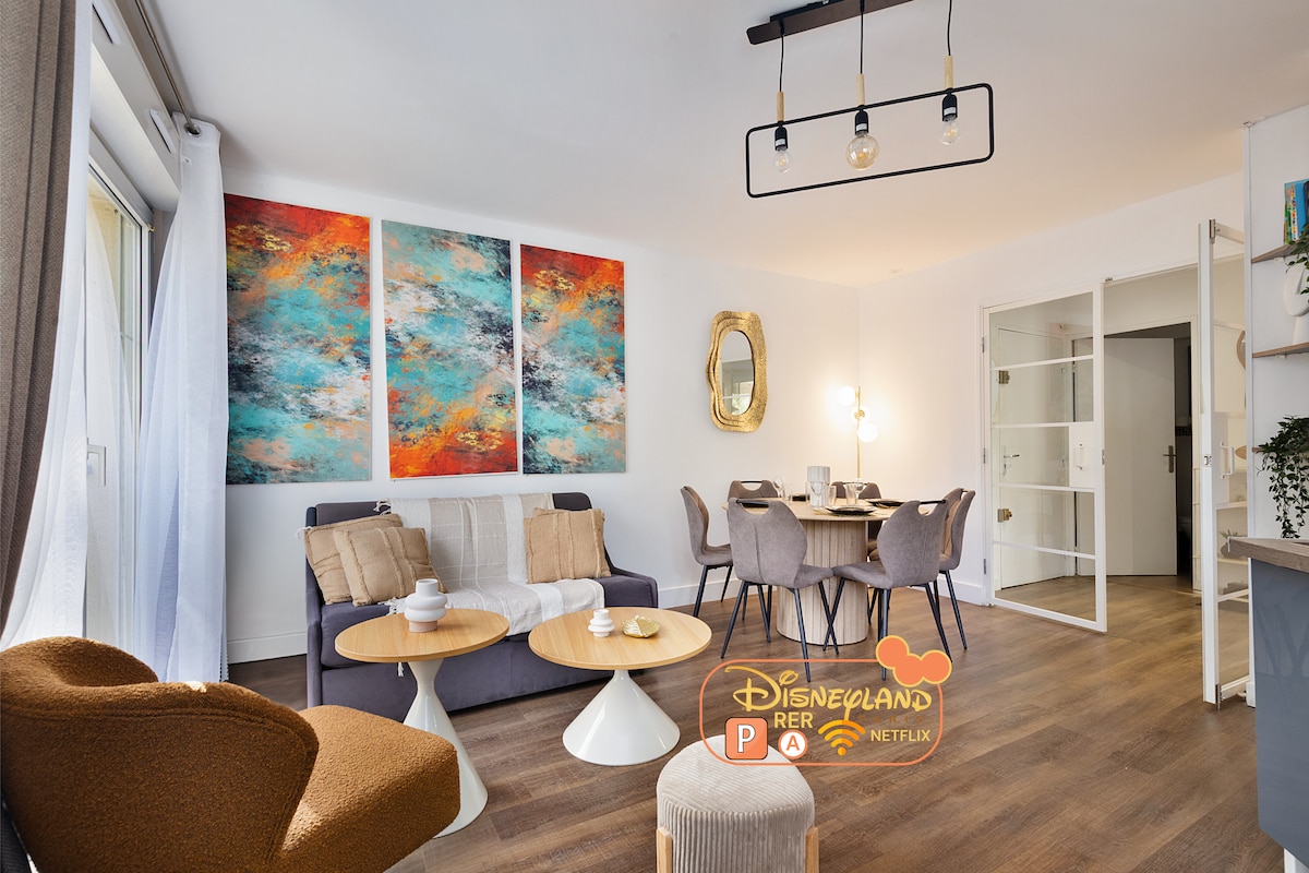 ¡Disfruta de una escapada inolvidable a solo 6 minutos de Disneyland y a 25 minutos del corazón de París! Alójate en un apartamento luminoso y elegante totalmente equipado para un máximo de 6 personas, con aparcamiento seguro. La elección perfecta para familias, parejas o cualquier persona que busque una escapada relajante. Disfruta de una mezcla de confort, comodidad y un ambiente cálido diseñado para que tu estancia sea realmente excepcional. Ubicado en una residencia tranquila y segura.