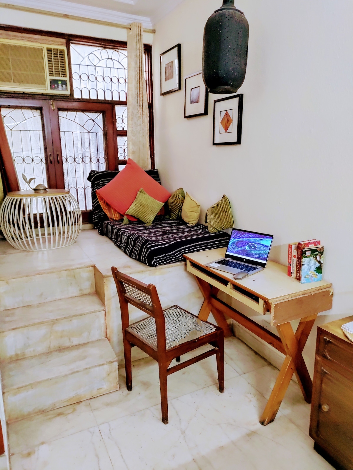 Llámalo elegante y espacioso en este barsati (habitación de lluvia en la parte superior de la casa) de ubicación céntrica. Esta elegante habitación se encuentra en el nivel 2 de nuestro haveli, que tiene más de 150 años, situado a 100 metros de la estación de metro Green Park. ¡Sí, has leído bien! A solo 100 metros de distancia. En medio del siempre bullicioso sur de Delhi, ofrecemos un espacio abierto bastante y pintoresco donde puedes relajarte, rejuvenecer y sentirte inspirado. Nuestros balcones panorámicos te transportarán al pasado, para recordar los buenos viejos tiempos. Descargo de responsabilidad: ¡JOYA OCULTA!