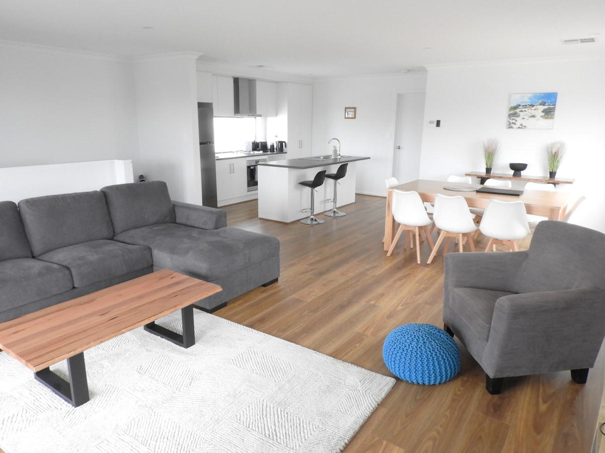 Ubicada a solo 300 metros de las hermosas playas de Moonta Bay y un parque infantil al lado, una cocina moderna contiene todo lo que necesitas, incluida una máquina de café y una freidora de aire, LEE EN El patio trasero cerrado tiene una pérgola con persianas al aire libre, barbacoa, fogata en invierno y anillo de baloncesto. Netflix disponible Notas importantes: Suministrado : edredones con fundas y almohadas , toalla de baño, toalla de mano NO se suministran : ropa de cama y toallas: están disponibles para alquilar, ponte en contacto con el anfitrión para organizarlo.