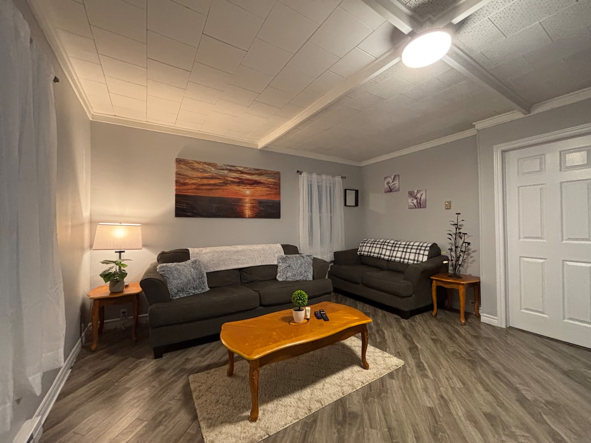 Relájate en este alojamiento que ADMITE PERROS. Esta espaciosa unidad de alquiler tiene dormitorio privado y sofá cama tamaño queen si es necesario. La COCINA PEQUEÑA ofrece una nevera de bar, fregadero, microondas, tostadora y hervidor de agua junto con todos los platos necesarios. La prensa francesa que se proporciona es perfecta para el café de origen local. Esta acogedora y cómoda suite en el sótano también tiene algunas bonificaciones adicionales, como una mesa de hockey de aire, un tocadiscos y una cinta de correr. Cozy Corner también ofrece aparcamiento privado y entrada con cerradura digital.