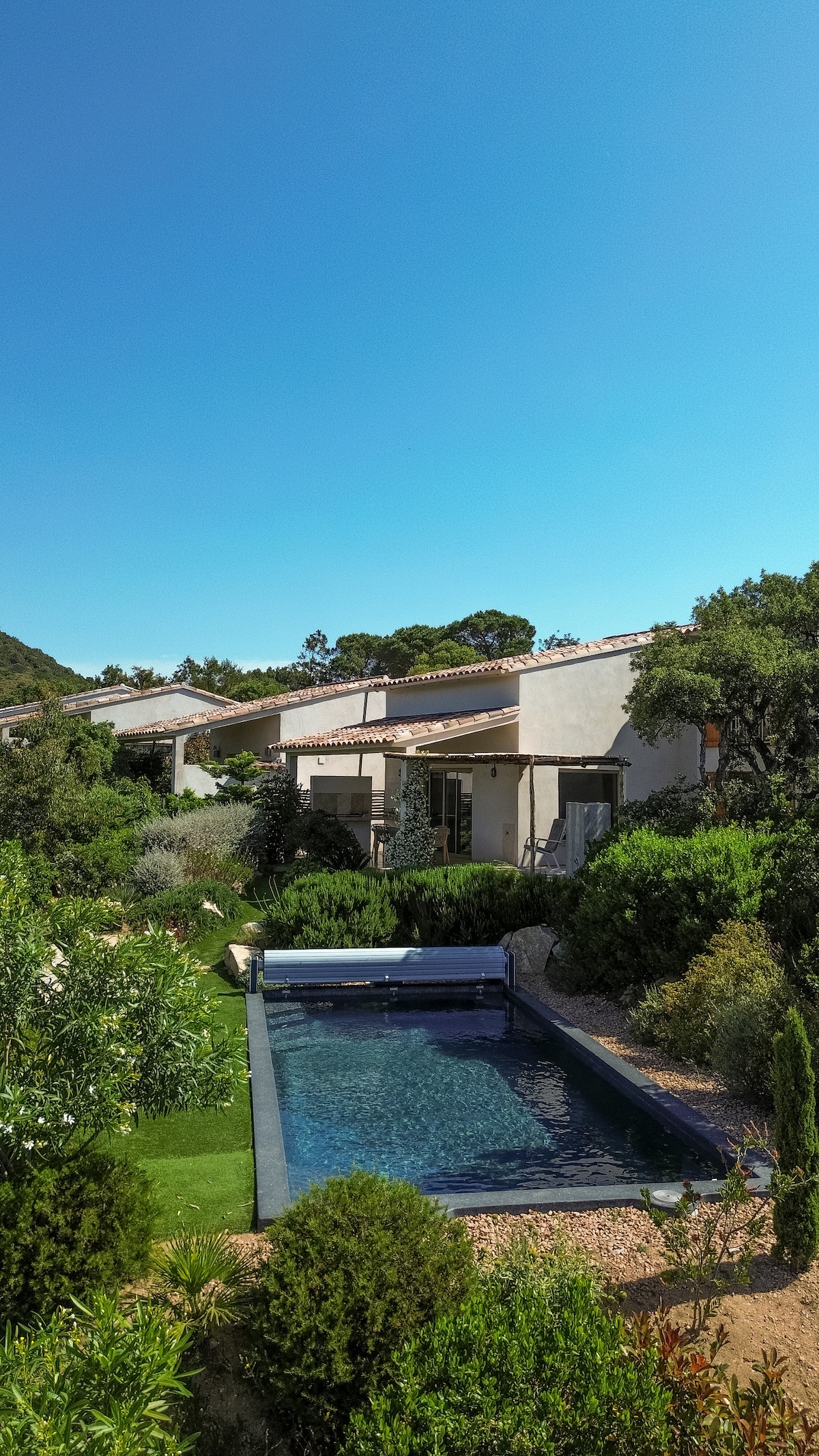 Nuestro alojamiento ofrece unas vistas magníficas de la montaña. Compartirá con nosotros una piscina de 6 x 3 m. La playa es accesible a pie. Totalmente renovado por nosotros, con una decoración única y refinada. Dispone de 2 camas individuales en la habitación y un sofá cama 140X190 en la sala de estar. La terraza está equipada con sillones, mesa, sillas, barbacoa. Aislados en un enorme jardín, estará en absoluta tranquilidad. Sus hijos y mascotas podrán moverse con seguridad