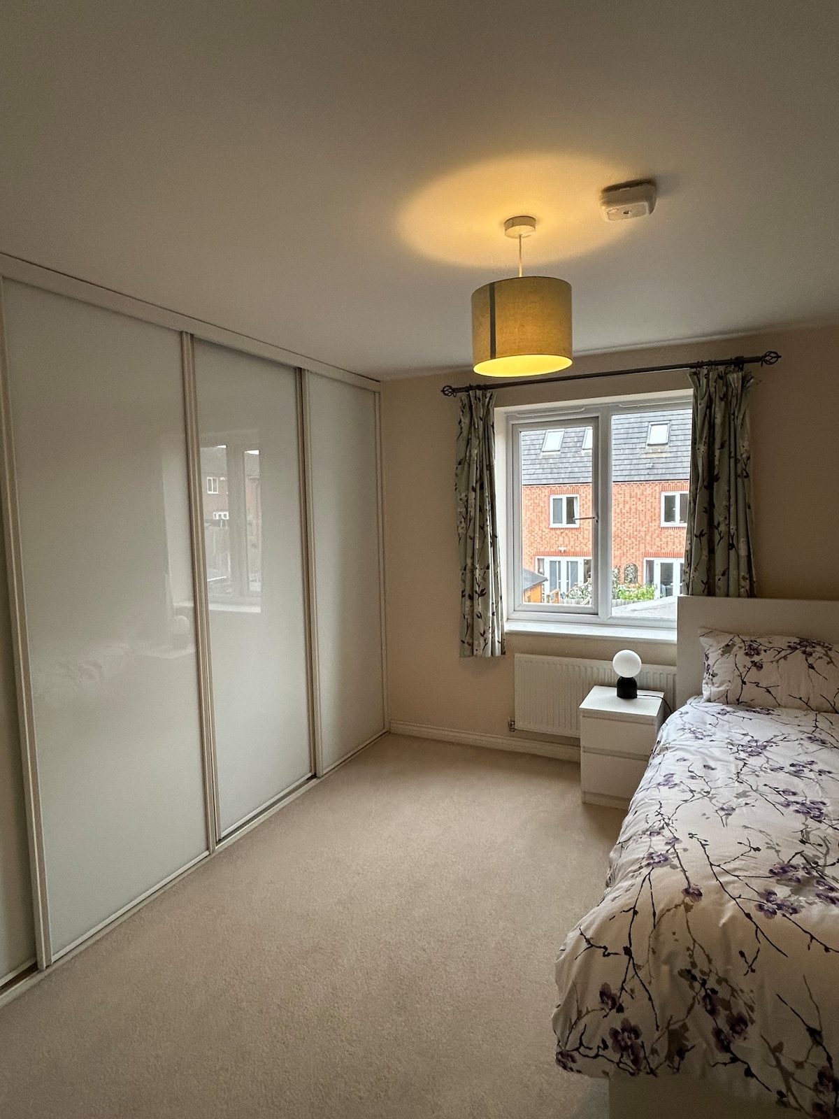 Modern, cosy ground floor extension. Light & airy bedroom, leading onto a private fully equipped en-suite bathroom. Located in a quiet suburb of Coventry, backs onto Allesley Park & Golf course. 10 mins from NEC/Bham Airport, close to JLR & Warwick & Coventry Uni's & UHCW (hospital). Good motorway links & easy access. TV, Wi-fi. Access to large new fully equipped kitchen/Diner & Utility Room. Large back garden with undercover lighted decking area. Smoke alarms fitted. Parking available