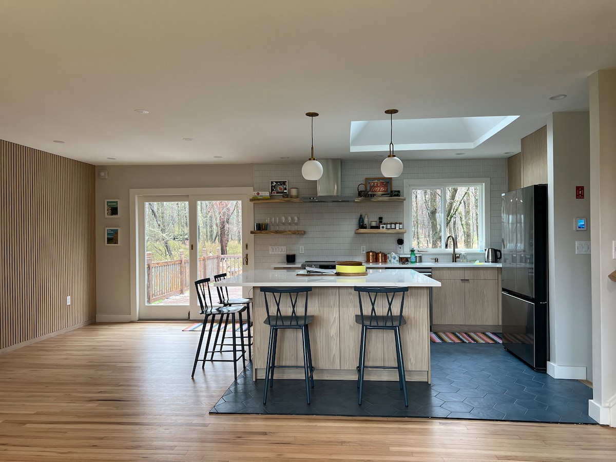 Escápate a nuestro alpino en el corazón de los Shawangunks, enclavado en el pintoresco valle del Hudson. A solo 1,5-2 horas de Nueva York, nuestra espaciosa y serena casa es perfecta para un refugio tranquilo, aventuras al aire libre y explorar bodegas locales. Las atracciones cercanas incluyen el parque del lago Minnewaska, la reserva Mohonk, Sam's Point, la ruta del vino Shawangunk, Ellenville y el monasterio Blue Cliff. La ubicación también ofrece un cómodo acceso para explorar muchas de las ciudades y pueblos de Hudson Valley y Catskill.