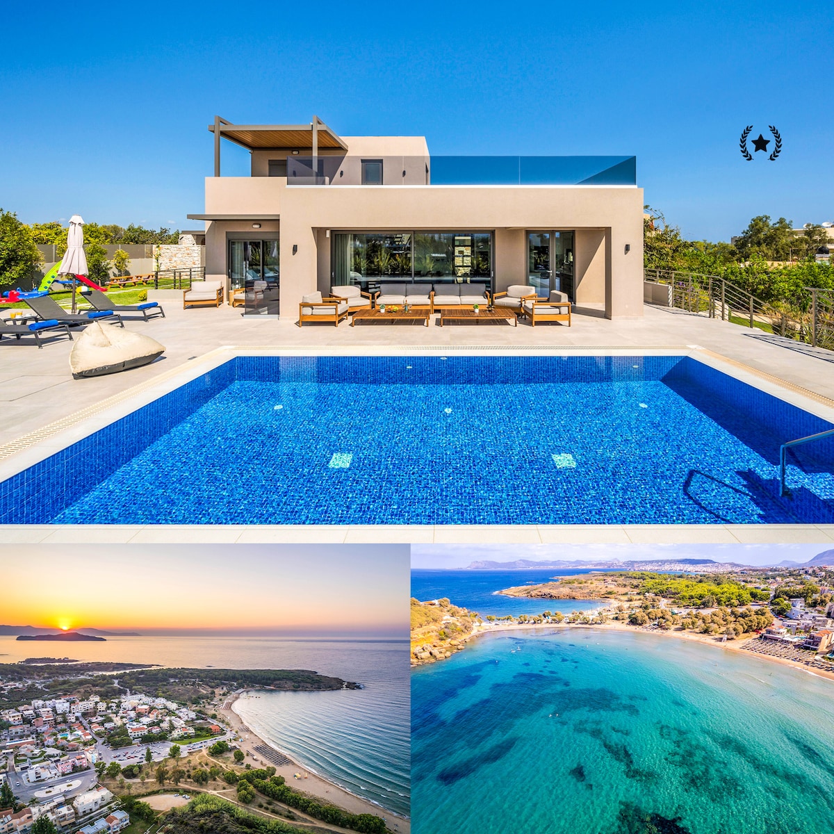 Villa Boutique DioNysos (por AmaZeus Group) Una lujosa villa diseñada, construida y terminada con los más altos estándares, a solo 20(!) metros del mar. Esta propiedad protegida por la tierra abarca la arquitectura y el diseño sostenibles, armonizando con los elementos naturales de su entorno para crear un ambiente sereno de lujo moderno. Con líneas limpias inspiradas en el minimalismo, la villa refleja la luz del sol maravillosamente, ofreciendo un entorno donde la naturaleza ocupa el centro del escenario