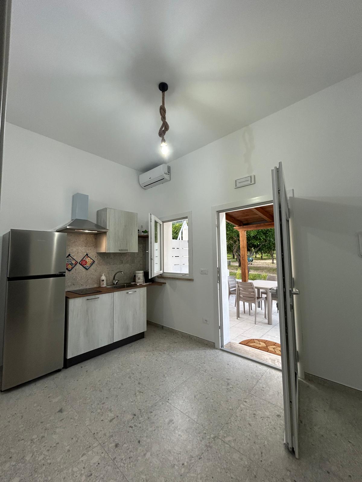 Se encuentra en una granja de 1880. Tiene dos entradas independientes: una desde el jardín y otra desde el patio de la granja. Amplio dormitorio con balcón y ventana, cama doble y una cama individual. Baño con ducha. En la planta baja, cocina y salón, con salida al espacio exterior de terracota y a la zona verde. Hermosas vistas de los campos y el mar del Golfo de Squillace. Para llegar, necesitas un coche con el chasis alto, porque la carretera, a pesar de ser municipal, está llena de baches.