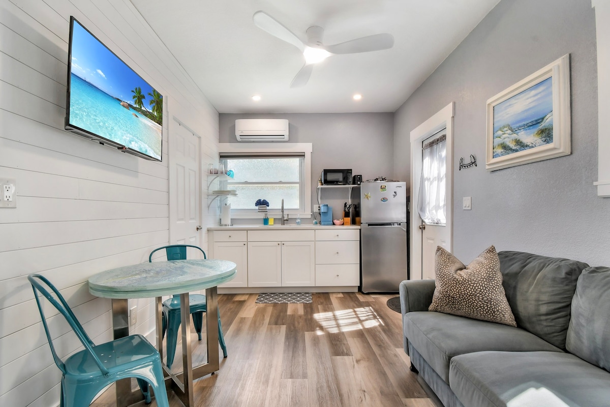 Esta exclusiva cabaña de surf es una casa de huéspedes con capacidad para 4 personas y mucho espacio para relajarse dentro o fuera en la gran terraza de madera situada bajo un hermoso roble. Situado en el distrito histórico de Tarpon, a pocas manzanas del centro de la ciudad, los famosos muelles de esponjas y Craig Park, donde se pueden ver delfines alimentarse al atardecer en los numerosos bayous. Cerca de playas, tiendas, restaurantes, cervecerías, excursiones en barco, deportes acuáticos y los senderos de Pinellas, ¡nunca te aburrirás en esta ciudad!