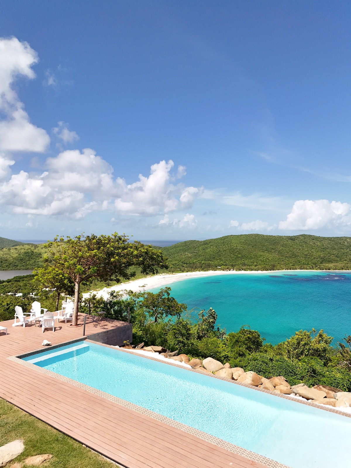 Casa Anya, que combina la magia de Culebra con la pasión de la India, la tierra natal de Kavita, te envuelve en espacios contemporáneos y amplios acariciados por la ropa de cama india. Disfruta de las vistas a la bahía y a las exuberantes montañas desde una relajante ducha de lluvia que conduce a una piscina privada y a una cocina completa para cenas románticas. Las puertas correderas a la terraza te invitan a disfrutar de puestas de sol, estrellas y brisas encantadoras con el canto de los coquís. Desplomaos en una cama king y despertad con los amaneceres rosados. Anya significa gracia en hindi; deja que adorne tus sueños caribeños.