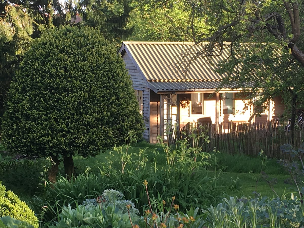 Maravillosamente luminoso y espacioso, rodeado de vegetación, el cobertizo del macizo de flores es fuera de lo común. Con una cómoda cama, elementos básicos de cocina, ducha exterior privada (¡caliente!) y un inodoro de compostaje, es un refugio encantador a solo 7 millas de Oxford.