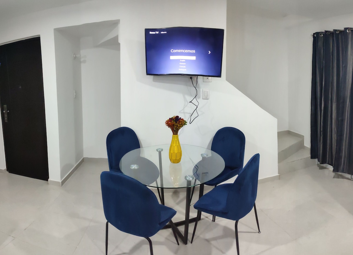 Bienvenido a mi departamento, un lugar perfecto para tu próxima estadía . Con una decoración moderna y cálida, te ofrecerá un ambiente cómodo y relajante . Es perfecto para parejas, familias, amigos, viajeros de negocios, etc. ..Ya sea que busques comodidad, ubicación, o un lugar tranquilo para descansar, este departamento es tu opción ideal. Nos encantaría que te hospedaras aquí y disfrutaras de todo lo que este espacio tiene para ofrecer!