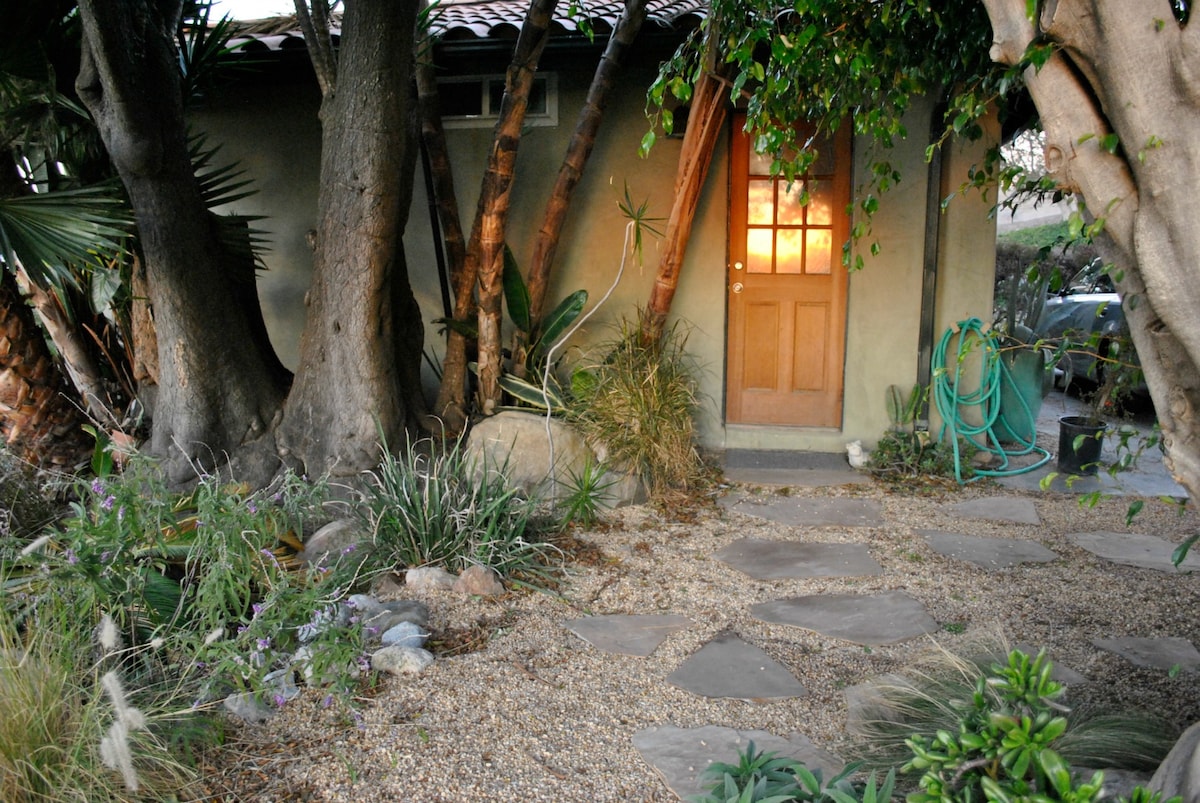 Este es un oasis tranquilo y cómodo situado en el centro de todo... - Entrada privada para vehículos. - Espacio abierto de techo alto con una pared de puertas de vidrio plegables que se abre a una zona de estar al aire libre con un sofá modular, chimenea y fuente. El sofá se convierte en una cama y hay un televisor 3D de pantalla plana grande con sonido envolvente. - La cocina tiene una isla de desayuno, estufa, horno, nevera de tamaño completo y acceso a todos los electrodomésticos que puedas necesitar. Electrodomésticos de acero inoxidable y encimeras de piedra. - El dormitorio se encuentra detrás de puertas correderas de vidrio helado. Cuenta con una cama tamaño queen con plataforma, armarios del suelo al techo, un calentador de chimenea, un televisor de pantalla plana y se abre al patio trasero y al jacuzzi. - Los espacios exteriores se comparten con la casa delantera. - Baño con una gran ducha y cabezal de ducha con efecto lluvia. - Internet inalámbrico y Netflix. - En el corazón de Culver City, junto a Sony Studios, a 5 minutos en bicicleta del centro de Culver City, a 2 minutos en coche de la 405, a 5 minutos de la autopista 10 y a 4 millas de Venice Beach. A 1 manzana de un gran parque con canchas de tenis y baloncesto, campo de béisbol y piscina. - Esta ubicación es conveniente para excursiones de un día a Hollywood, Universal Studios, el mundialmente famoso Getty Center y Villa; Pan Pacific Park, rutas de senderismo locales específicas, Santa Monica Pier, Venice Beach, la vida nocturna y los restaurantes del centro de Culver City. - No hay problema con el aparcamiento en la calle. Envíame un mensaje de texto y te responderé en cuanto pueda. El bungalow se encuentra en la parte trasera de la casa principal, en la misma calle que muchos restaurantes, panaderías, una tienda de comestibles y un parque. El barrio es ideal para caminar y es una base perfecta para excursiones de un día a Hollywood, el centro de Los Ángeles y la playa.