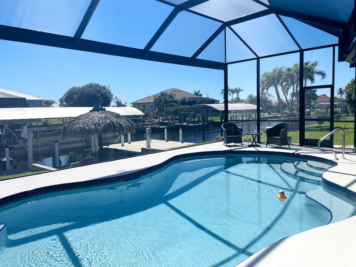 - A 5 minutos del centro de Cape/10 minutos a Yacht Club Beach, a 20 minutos de Causeway Beach, a 25 minutos de Ft Myers y Sanibel Beach. - Patio trasero vallado tropical con piscina, jacuzzi, fogata de gas, silla colgante, hamaca y parrilla Blackstone - Elementos básicos de playa, tablas de boogie, sombrillas, vagón de playa, nevera y sillas. - Juegos de mesa, ping-pong, corn-hole, dardos, 2 kayaks+ chalecos salvavidas. - 2 bicicletas y cascos para cruceros en la playa - Patio cubierto cerrado y luces de cuerda, letrero de neón y pared de césped. - Accesoanal para el lanzamiento de kayak a 5 minutos.