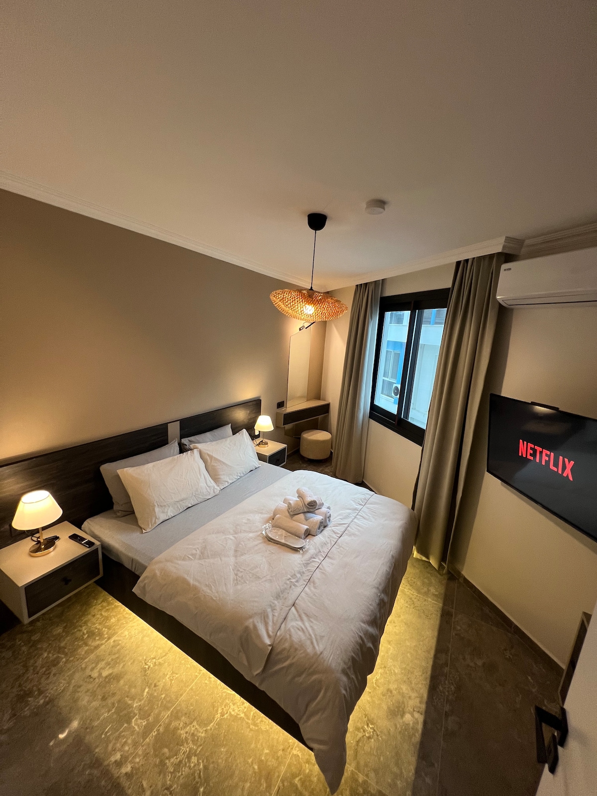 Mi apartamento en Dalaman ofrece un alojamiento moderno y cómodo con un amplio dormitorio, televisión inteligente con Netflix, internet rápido y aire acondicionado potente para una estancia agradable. La cocina está totalmente equipada; té, café y utensilios esenciales están listos. Se proporcionan toallas limpias y productos de baño. Con su proximidad al aeropuerto, ubicación segura y tranquila, ofrezco un ambiente relajante como en casa.
