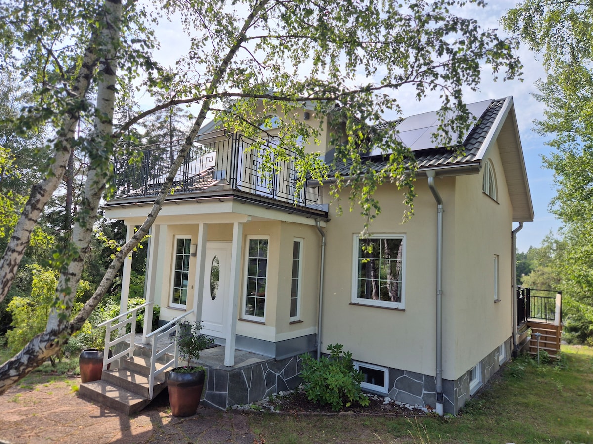 Villa acogedora a 12 minutos del centro de Estocolmo. Hermosamente ubicado en un entorno tranquilo y verde con una ubicación inmejorable cerca del pulso de la gran ciudad, lo mejor de ambos mundos. Generosas salas de estar abiertas y una fantástica cocina con espacio para todos. Perfecto para tomarlo con calma o pasar el rato con familiares y amigos. ¡Gran jardín privado con una sensación encantadora! Conveniente a poca distancia a pie de la hermosa naturaleza, buenos restaurantes, parques infantiles, playa y varios paseos. Autobús, trenes y metro cerca.