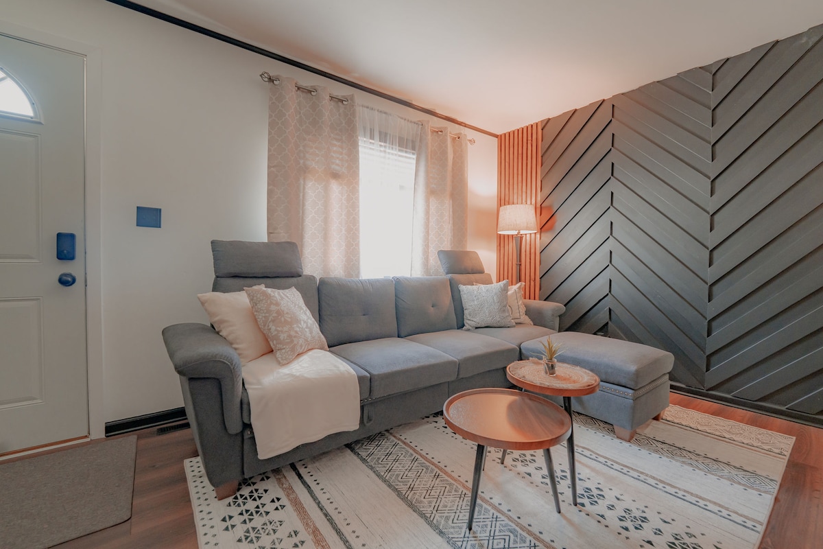 Esta casa de 3 dormitorios y 2 baños recientemente renovada cuenta con todos los servicios de un hogar: una cocina/comedor grande y bonito, amplios asientos en la sala de estar y un dormitorio principal con cama tamaño king. Todas las habitaciones tienen colchones nuevos de espuma viscoelástica. Completamente vallada en el patio trasero y lateral. Limpiada y desinfectada con limpiadores no tóxicos y sin perfumes ni aromas artificiales para las personas alérgicas. Hemos renovado meticulosamente esta propiedad en 2020 pensando en nuestros huéspedes. Esperamos que sea un respiro tranquilo y pacífico.