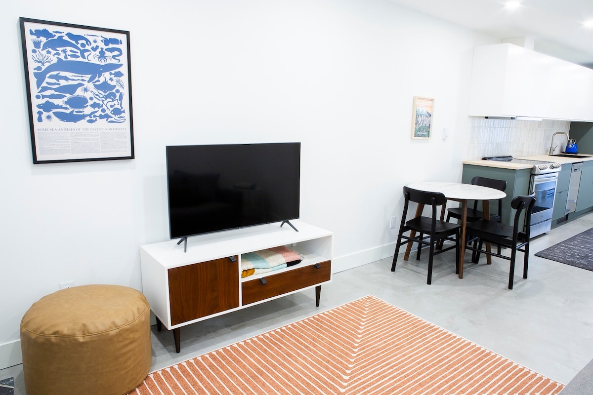 Welcome to your bright and peaceful home base in the heart of North Van! This fully private one-bedroom apartment is perfect for solo travellers, couples, travel nurses or remote workers looking for a quiet, well-located, and comfortable place to stay. Built to passive home standards, the suite stays cool in the summer with AC and cozy in the winter with radiant floor heating — all while offering the amenities and thoughtful touches to make your stay smooth and relaxing.