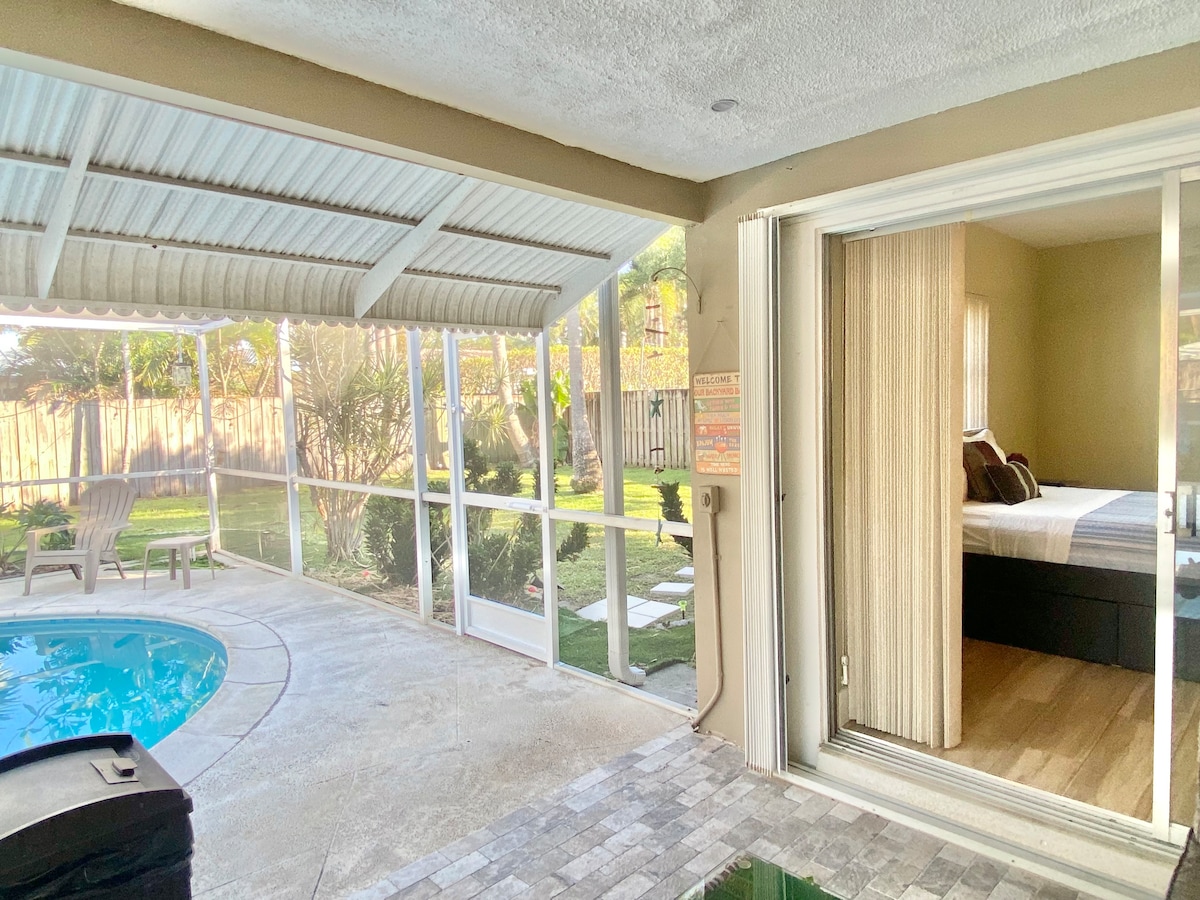 ¡Ven y disfruta de una experiencia local, pero con la privacidad de tu propio estudio! Suite de invitados completamente renovada en un barrio tranquilo y familiar. Todo nuevo, ducha de cascada de lujo, cómoda cama tamaño king, TV inteligente (sin cable), cocina americana (ten en cuenta que no hay horno ni fogones), con mininevera, microondas, fregadero, quemador eléctrico, parrilla eléctrica y tu propia lavadora y secadora. ¡Zona privada al aire libre! Los anfitriones son lugareños de Deerfield Beach y están justo al lado para ayudarte en lo que necesites.