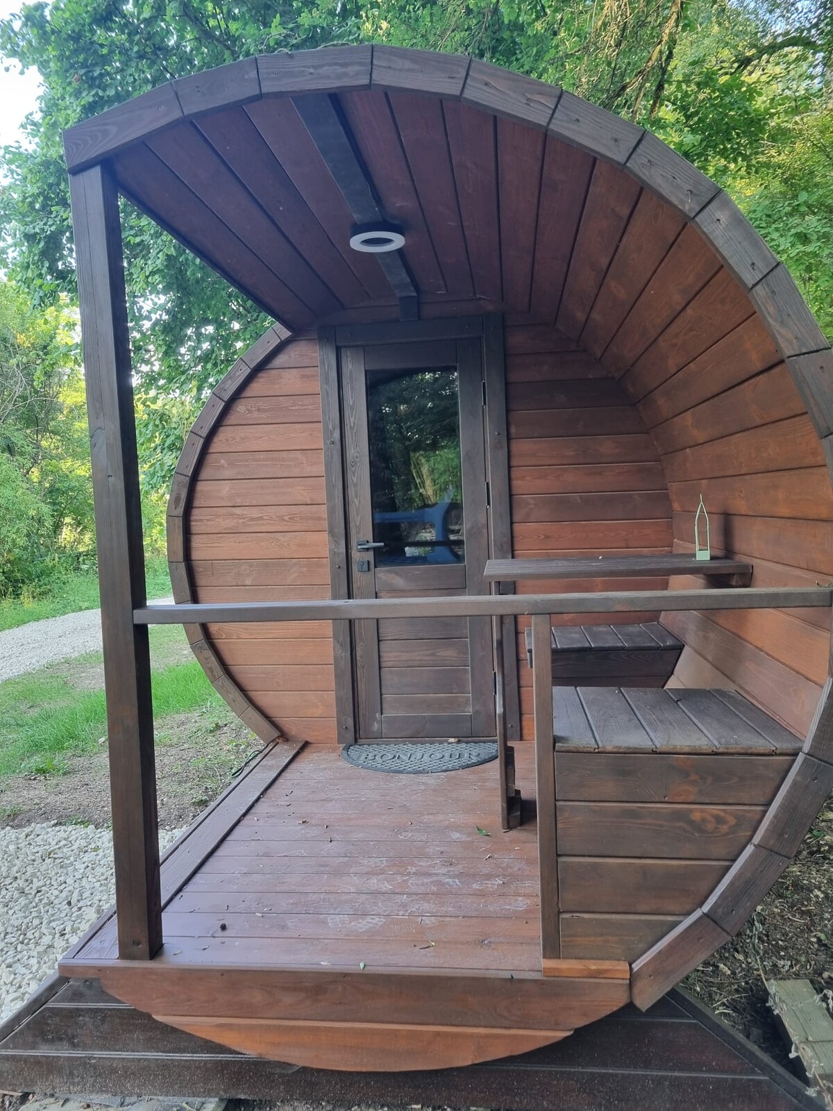 Évadez-vous le temps de votre séjour dans l'univers unique du tonneau. Les reflets du soleil sur les arbres majestueux et l'eau de la rivière, vous transporteront dans un monde naturel et féerique. La forme de ce logement vous plonge dans une ambiance douce et chaleureuse. Le bois de cette cabane vous fera voyager pour un dépaysement complet. Installé sur le bord de la rivière, le dépaysement est assuré !