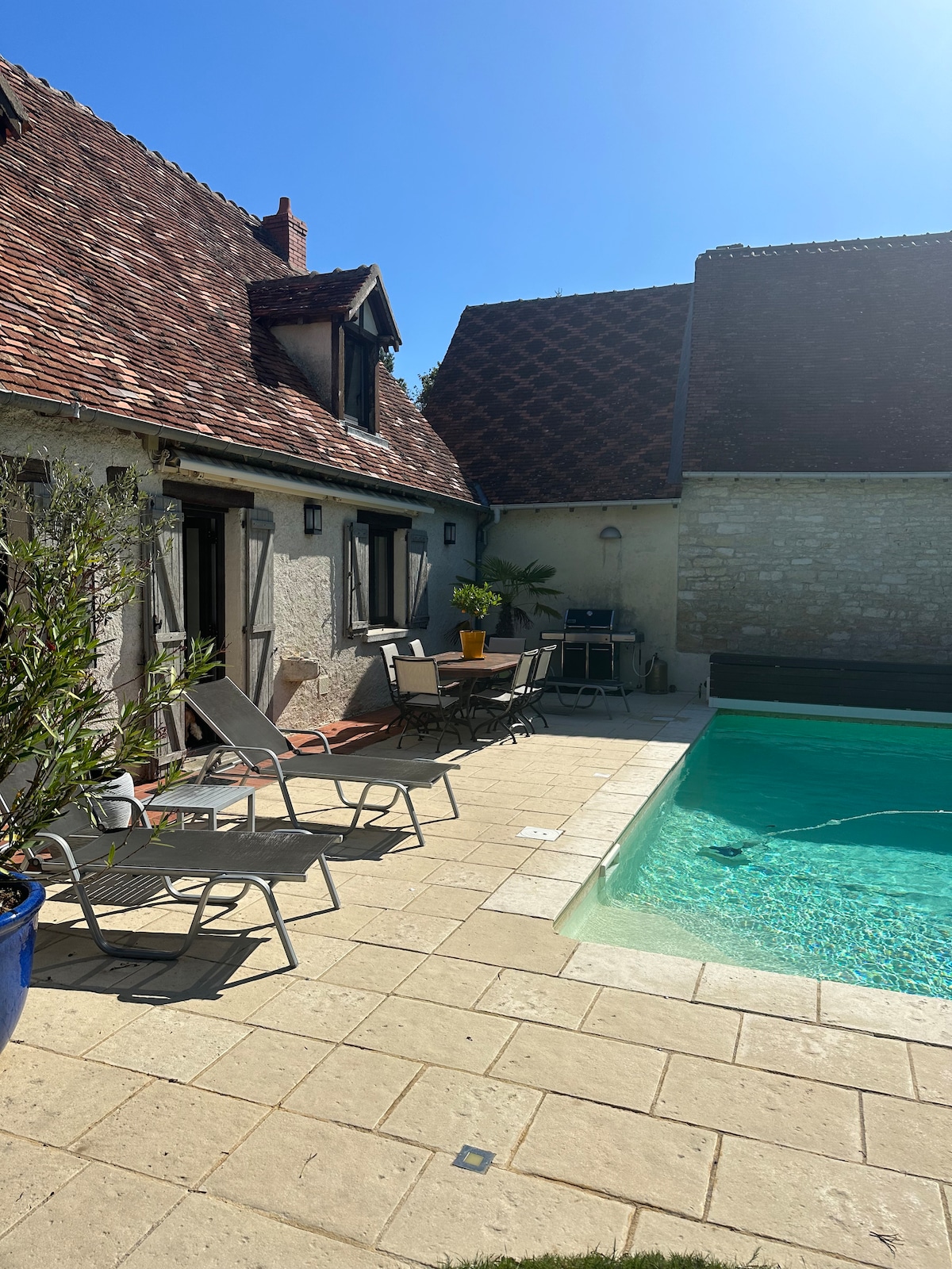 Escápese por una noche, un fin de semana o más en pareja mientras disfruta de las maravillas de nuestra región. Esta casa típica de Berrichonne ofrece un espacio totalmente privado con una decoración cálida, relajante y relajante. Sus prestaciones de alta gama le garantiza una estancia relajante exitosa. Podrá relajarse en su jacuzzi de última generación, con su fuente luminosa y sus altavoces conectados Bluetooth. Solo tienes que dejar tus maletas:)