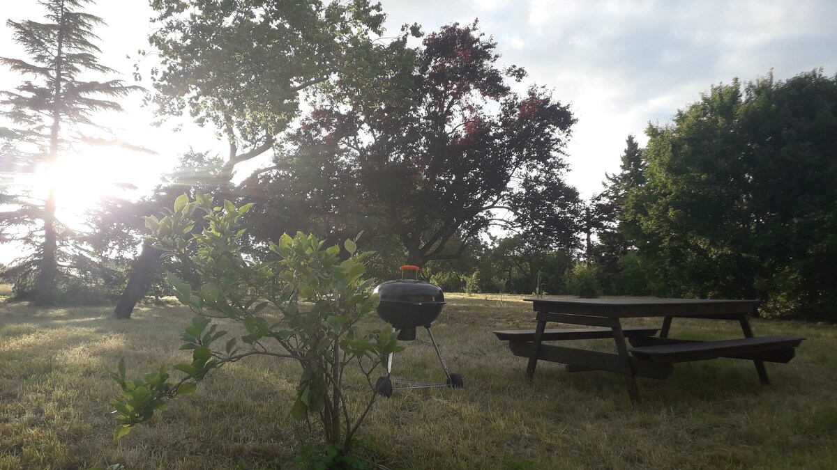 En el corazón de los campos, en el borde del bosque, este pequeño paraíso verde, alberga una casa de campo del siglo XVIII, parte de la cual está reservada para pasar unos días desconectados. Dúplex con encanto/ Planta baja: cocina, sala de estar ( estufa de leña) y SDB. Una escalera "árbol" le llevará al dormitorio de arriba. En el exterior: terraza, césped, barbacoa y excelentes puestas de sol! ¡Nos vemos en la dacha de Sacha!
