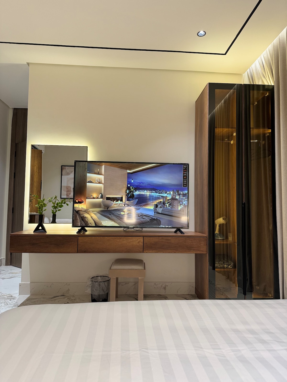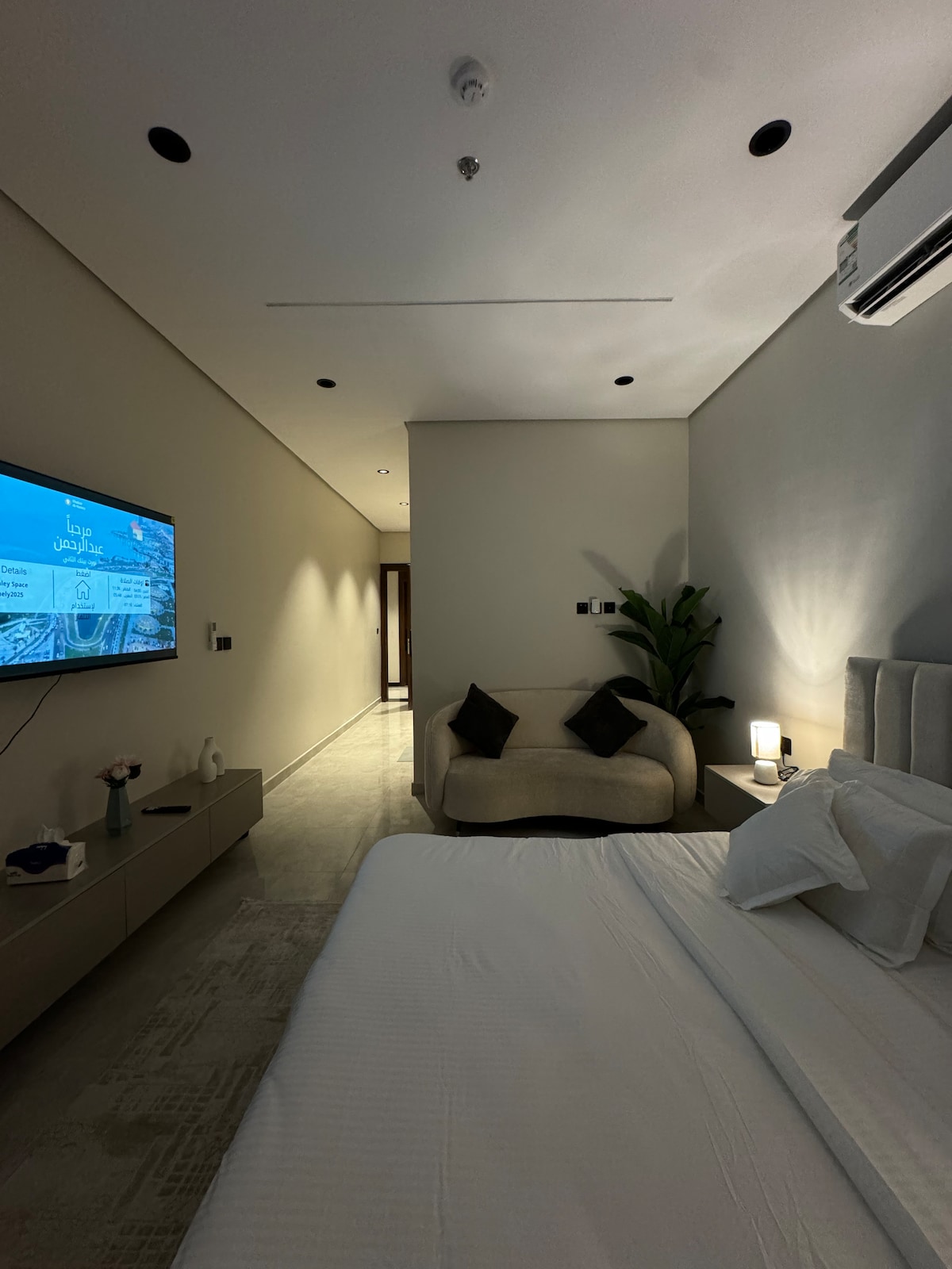 Te damos la bienvenida a nuestro elegante apartamento tipo estudio en Khobar. Este moderno espacio es perfecto para viajeros solitarios o parejas que buscan comodidad y entretenimiento. El estudio cuenta con una cómoda cama y un sofá, un rincón de café bien equipado, un gabinete. Disfruta de tus programas favoritos en el televisor inteligente de 60 pulgadas, con acceso gratuito a Netflix. Ya sea que te estés poniendo al día con tu serie favorita o disfrutando de una noche de cine, el entretenimiento está al alcance de tu mano ¡Se ha instalado Internet de fibra de alta velocidad!