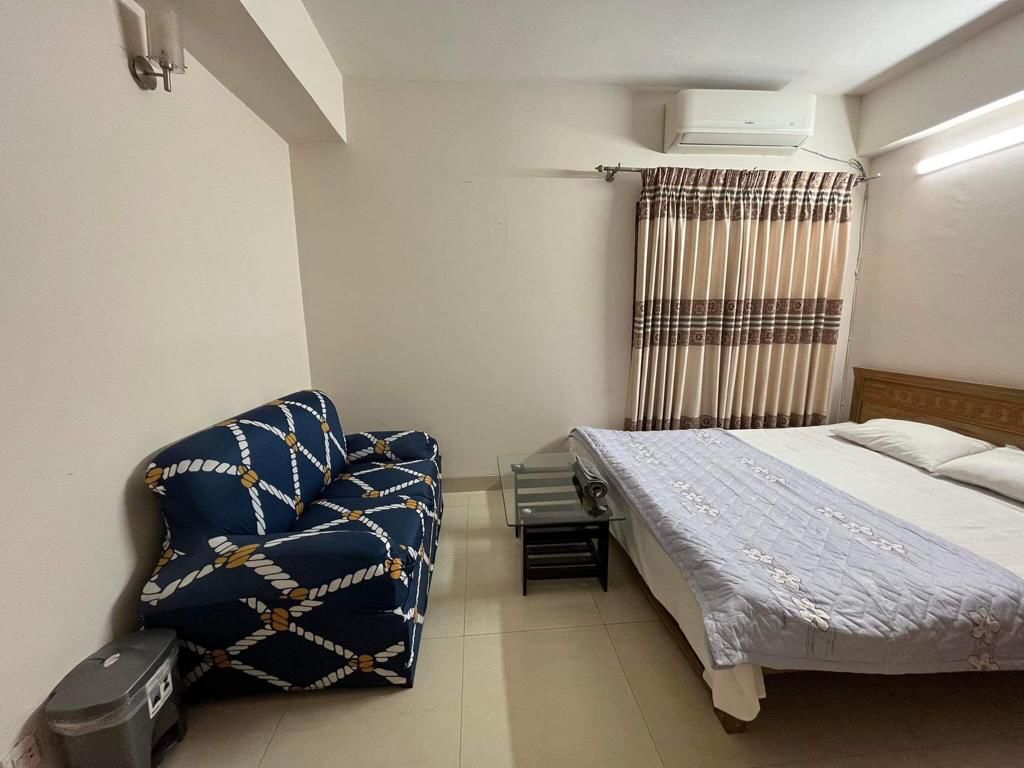 Los apartamentos tipo estudio están ahora en Daca. Es un apartamento en sí que tiene entrada privada. La habitación está completamente amueblada con aire acondicionado equipado moderno, nevera y TV inteligente. Hay una cocina abierta con un quemador de infrarrojos y todos los servicios de cocina. Hay una pequeña mesa de comedor, balcón y un baño adjunto con una instalación de géiser, etc. Incluimos mascarillas, desinfectante y desinfección de habitaciones.