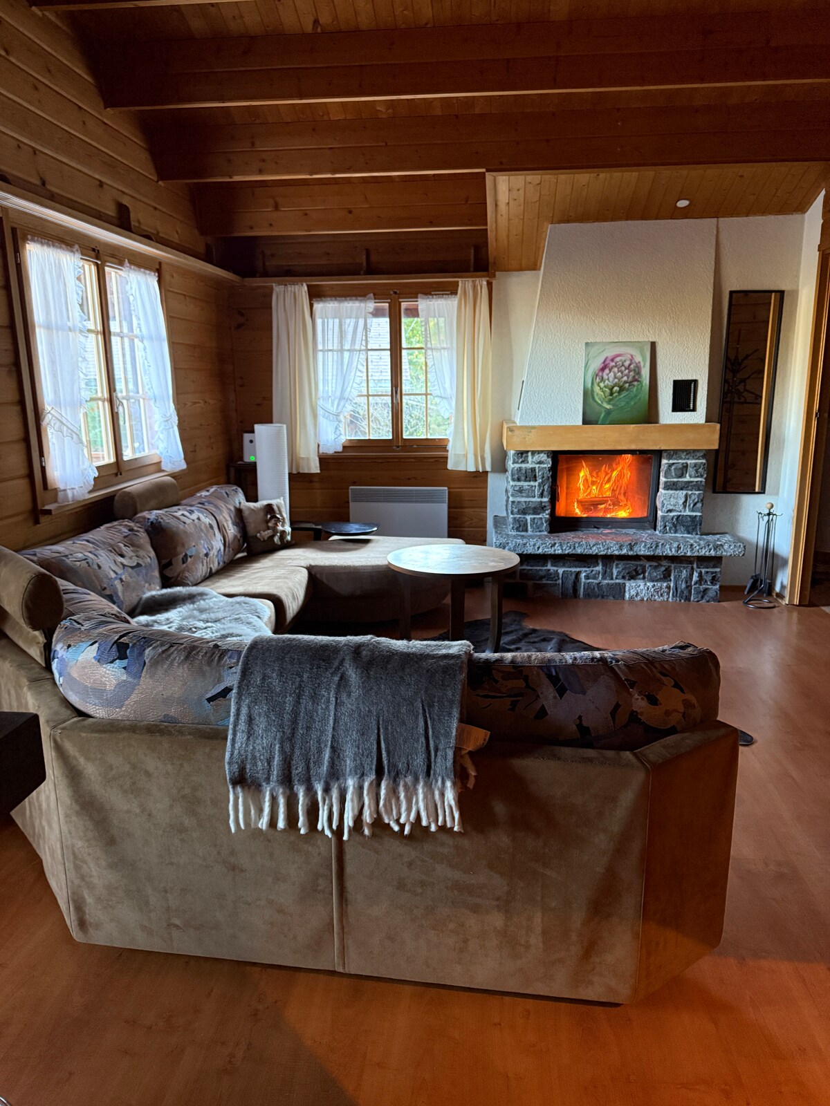 Vives en el hermoso apartamento de una casa protegida, en medio de la zona agrícola. La casa forma parte de una granja que se alquila desde 2018. El apartamento es ideal como retiro. En la cocina hay productos básicos para cocinar. En el estudio contiguo se hace música, se ofrecen clases de coaching y mucho más. Las posibilidades de practicar deportes de invierno están muy cerca. Hermosa zona de senderismo. El lago de Thun para nadar es muy accesible.