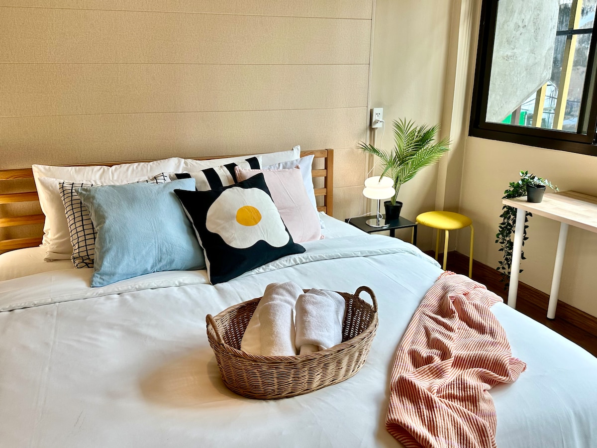 Dormitorio tamaño 🏨queen + baño privado (no es necesario compartirlo🤩) Ubicado en el corazón ❤️ de Bangkok - Zona de Siam **MEJOR UBICACIÓN** A ✨1 minuto a pie de “Banthat Thong” Food Steet A ✨5 minutos en auto/ motocicleta/ tuk tuk de BTS - Estadio Nacional/ MRT - Área de Samyan / MBK/ Siam Instalaciones 🛌en la habitación.🪞 ✅Aire acondicionado ✅Cargador de teléfono (iPhone, TypeC) ✅Calentador de agua TV ✅inteligente Prestaciones 🆓gratuitas🆓 ✅Agua ✅ToothBrush and Toothpaste ✅Toallas desechables Pantuflas ✅desechables ✅Champú/gel de ducha/acondicionador