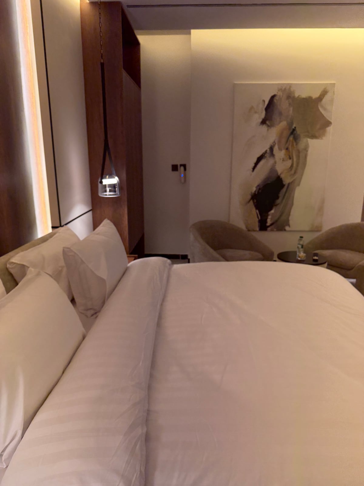 Un apartamento moderno diseñado para una estancia excepcional, situado en uno de los mejores barrios de Riad con unas vistas impresionantes de KAFD. Cuenta con una zona de estar al aire libre con pantalla y proyector para disfrutar de las noches. Para tu comodidad, la cama incluye una capa adicional de 14 cm de alta calidad. «También ofrecemos servicios de coordinación de eventos para ocasiones especiales (incluyendo pasteles y accesorios) por una tarifa adicional con reserva previa, lo que garantiza una experiencia inolvidable»