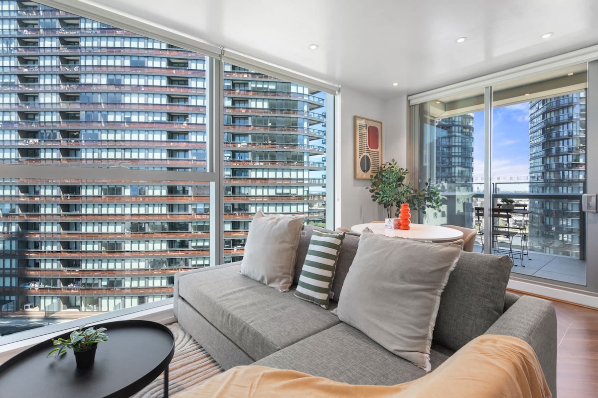 Elegante apartamento de 2 dormitorios con vistas a la ciudad en Docklands con piscina, spa y gimnasio