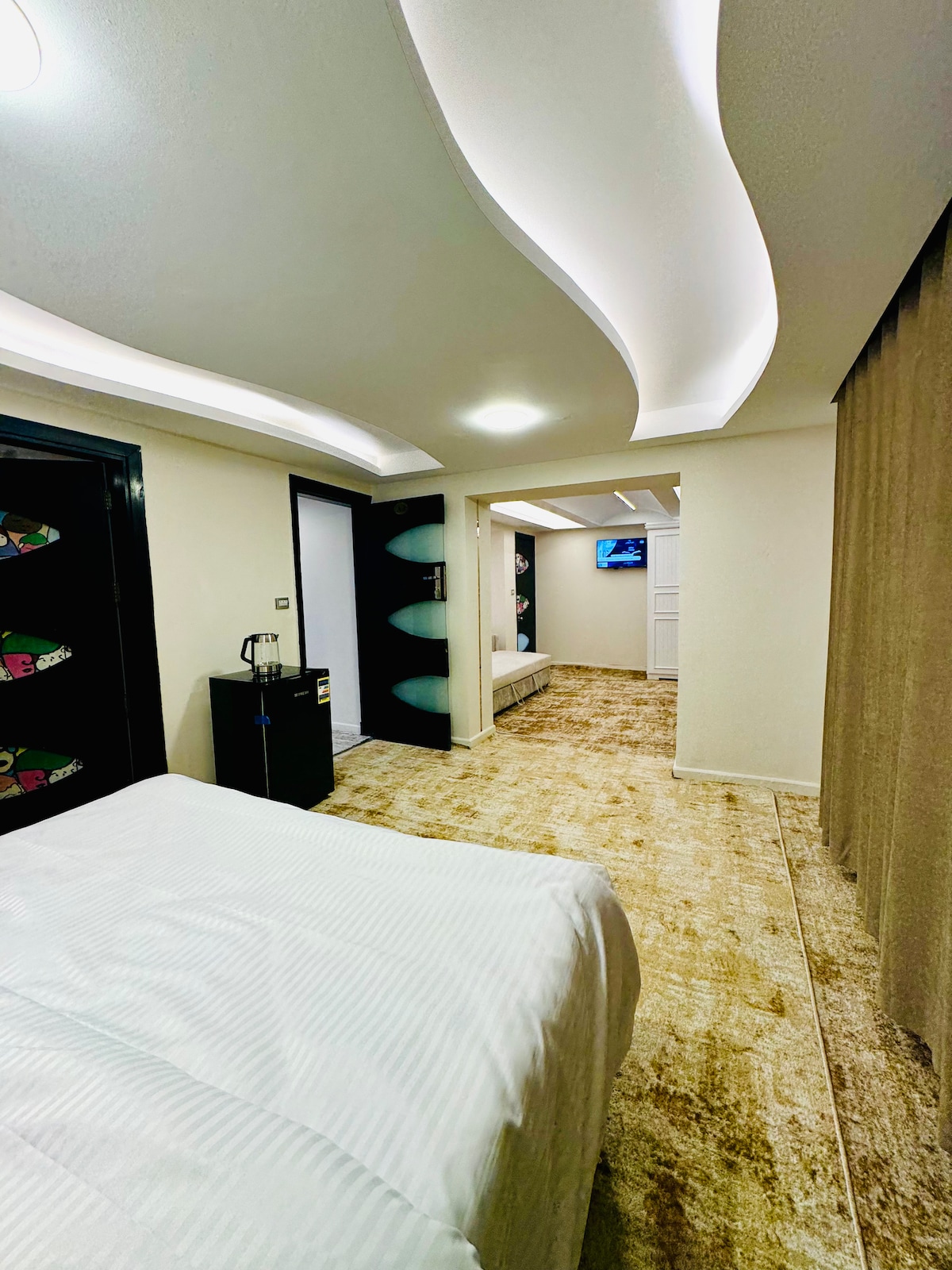 El estudio doble Deluxe tiene baño privado. El dormitorio es amplio, tiene aire acondicionado y 1 cómoda cama tamaño queen y armario. La sala de estar cuenta con TV de pantalla plana, WiFi gratuita, televisión por cable, minibar y hervidor de agua. El baño está limpio y moderno. La propiedad ofrece a los huéspedes sábanas limpias, toallas y almohadas extra.