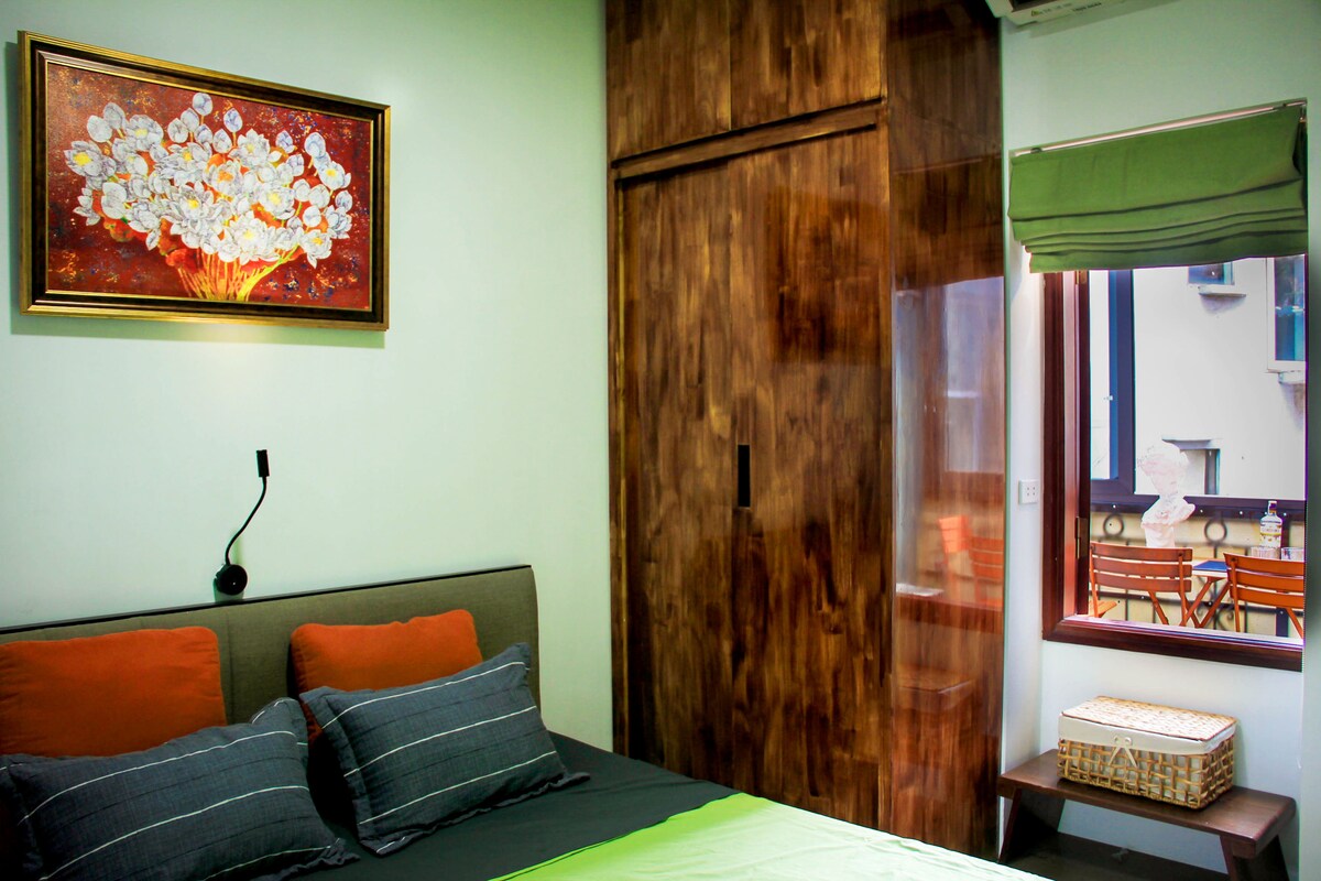 Chào mừng bạn đến với một chốn dừng chân xanh mát giữa lòng phố cổ Hà Nội. Ẩn mình trong con ngõ yên bình trên phố Hàng Rươi - một mảnh ghép của 36 phố phường Hà Nội xưa - homestay đầy duyên dáng này hòa quyện nét hoài cổ của Hà Nội với sự tiện nghi hiện đại và thiết kế đầy tinh tế. Với gam xanh dịu nhẹ, chất liệu gỗ ấm áp và những món đồ trang trí thủ công, không gian mang lại cảm giác thư thái, bình yên và đậm chất địa phương.