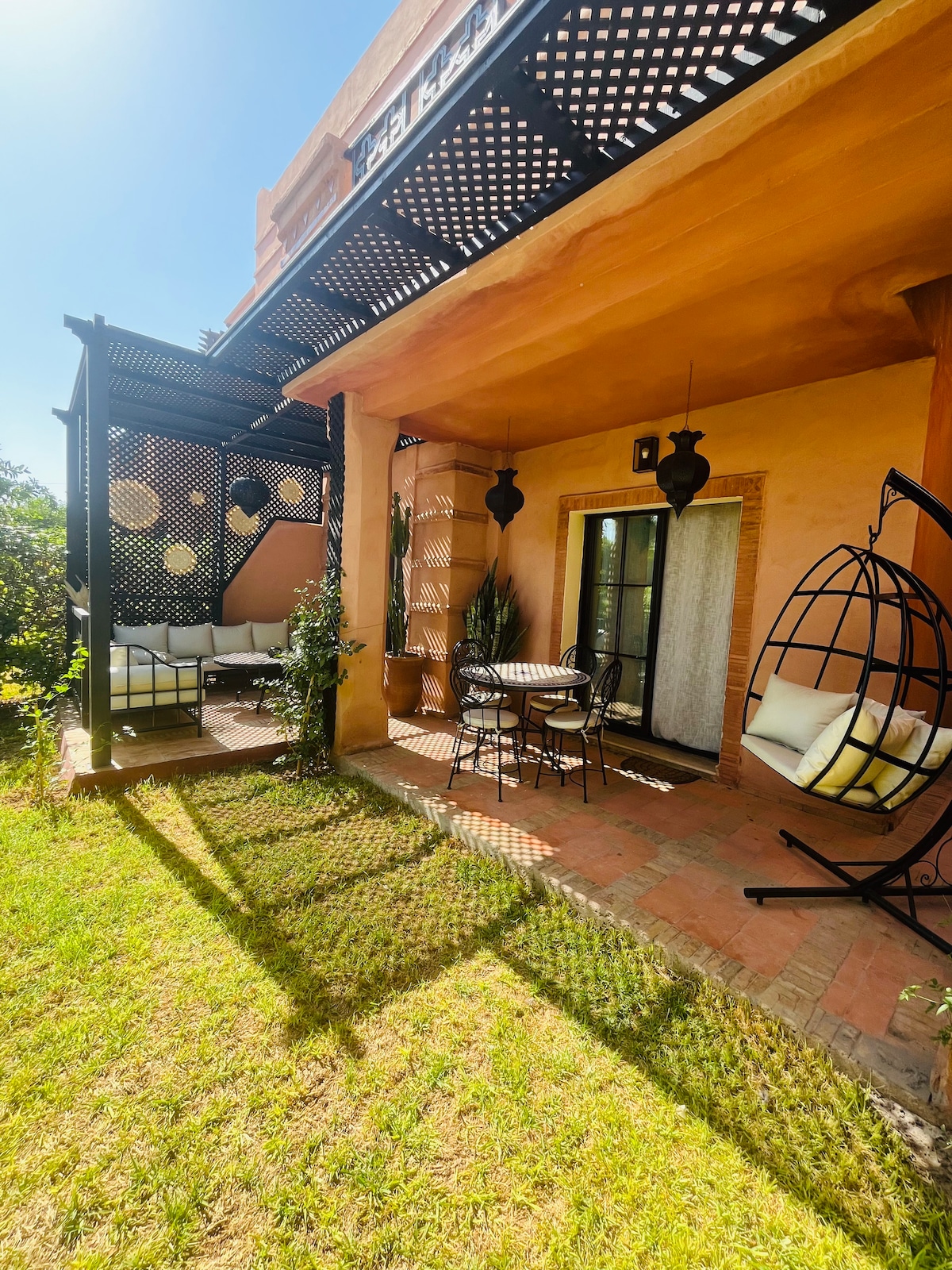 Encantador apartamento con terraza y jardín privado, en Atlas Golf Resort, una residencia tranquila y segura situada en la carretera de Fez, a unos diez minutos en coche del centro de Marrakech. La residencia ofrece 2 piscinas con tumbonas y sombrillas, hermosos jardines, un parque infantil y un campo de fútbol. Con 2 dormitorios, 2 baños y una cocina equipada, el apartamento tiene aire acondicionado y puede alojar hasta 6 personas. Cuenta con wifi y una televisión inteligente (Netflix).