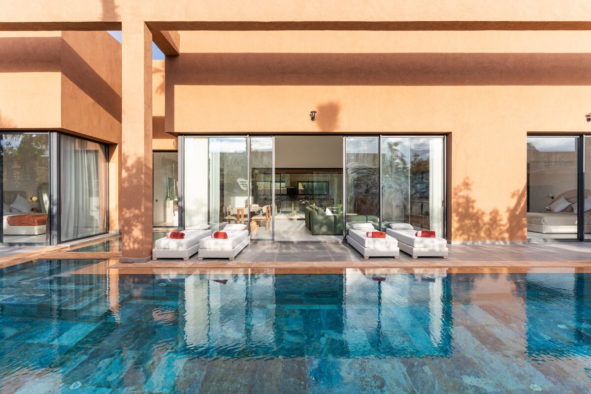 BIENVENUE A VILLA PAIX ! ✨ Une villa moderne pensée pour le confort, la lumière et la détente, idéale pour profiter pleinement de Marrakech en toute tranquillité. Ici, vous profitez d’un véritable espace de vie intérieur/extérieur, avec piscine privée, terrasse ensoleillée, sentiment d'espace, de confort, de tranquillité, et d'intimité. 📌 À proximité (environ) : 15 min – Aéroport Marrakech Menara 13– Centre-ville / Guéliz 15min - Jemaa el-Fna Accès rapide aux principaux axes