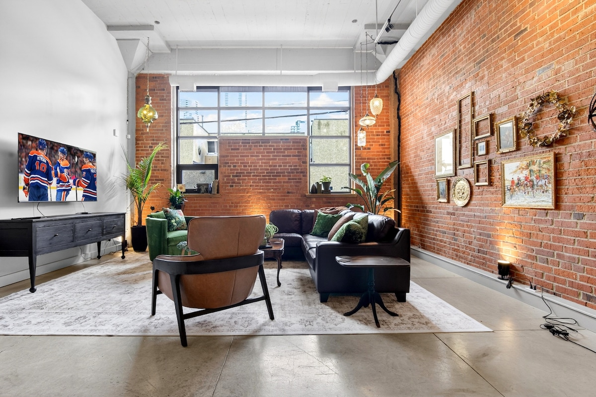 ❤️ LET'S GO OILERS! ❤️ WELCOME TO OUR CHIC URBAN WAREHOUSE LOFT, centrally located in the heart of Edmonton! Steps away from the ICE DISTRICT & Rogers Place, Grant MacEwan, City Center Mall, Royal Alberta Museum, art galleries, restaurants, & everything downtown has to offer. Easy access to U of A, WEM, and Commonwealth Stadium. In town for business or pleasure? Our stylish loft offers the perfect retreat. Free underground parking! AC from May to Oct! Experience urban living at its finest!.