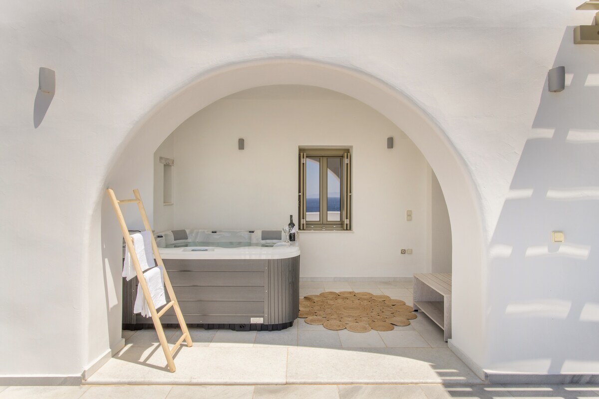 Disfruta de lujo y comodidad en Aegis Royale Villa en Naoussa. Este nuevo alojamiento ofrece una cama tamaño king, cocina totalmente equipada, baño, TV vía satélite, wifi gratuito y un jardín privado con jacuzzi al aire libre. Disfruta de comidas al aire libre con barbacoa y relájate en la zona de descanso. A pocos pasos de la bulliciosa zona turística, la estación de autobuses y la parada de taxis. Disfruta de la comodidad y crea recuerdos inolvidables en Aegis Royale Villa.