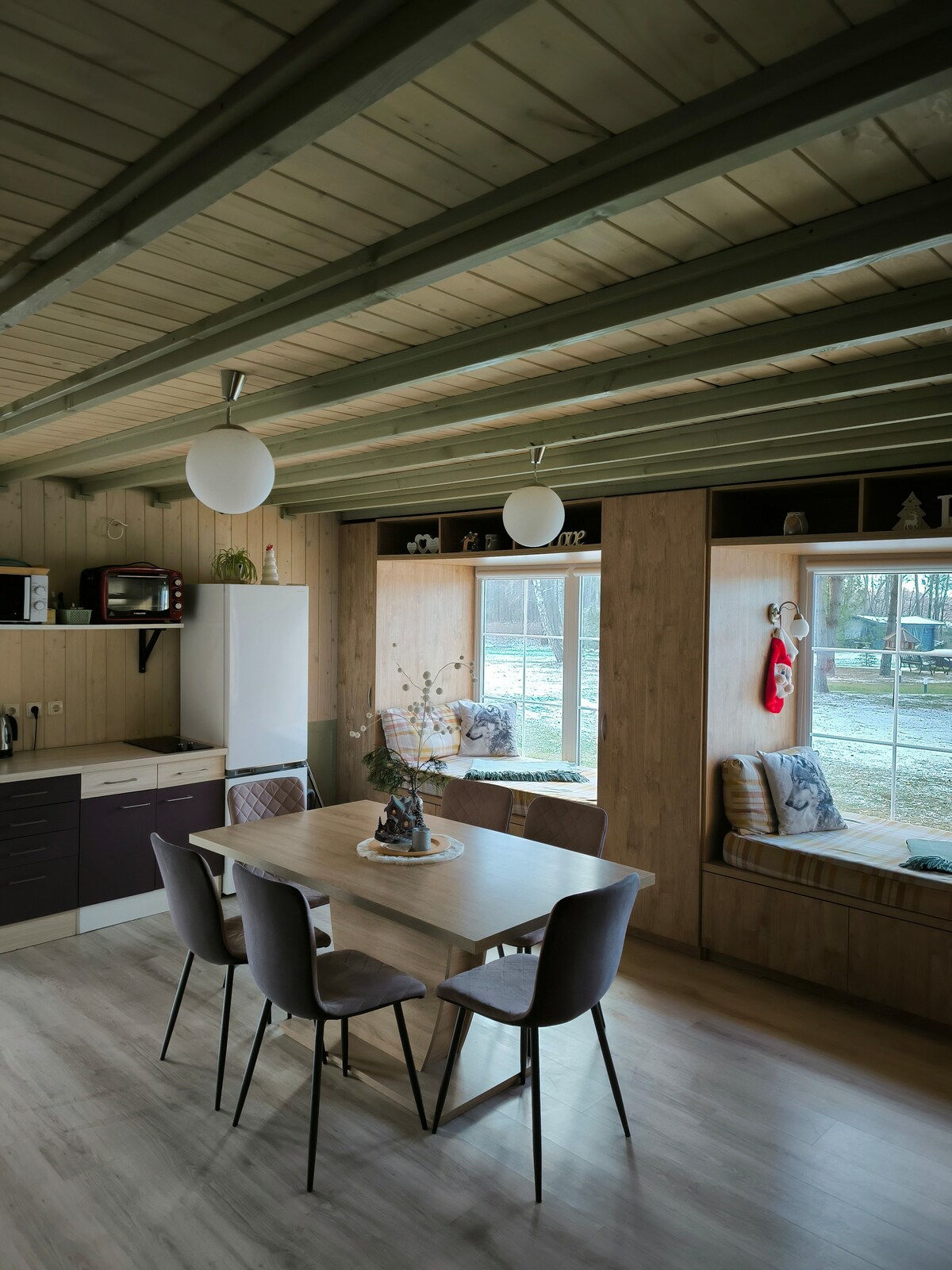 Descanso tranquilo para dos,familia o grupo de amigos en el distrito de Lazdij, posibilidad de instalarse en un grupo de hasta 8 personas. La cabaña cuenta con zona de cocina con microondas, vitrocerámica, hervidor de agua, ollas para hervidor de agua, platos, cubiertos, nevera, té, café y azúcar. ¡Podrás hacer todo tan bien como en casa! Casa de campo para todos los servicios: wc, ducha y lavabo. Para el disfrute nocturno, podrás pasar el rato en la sauna caliente o disfrutar de las burbujas de la bañera de hidromasaje a orillas del lago (sauna: 50 euros por la noche). Jacuzzi: 70 euros por la noche)
