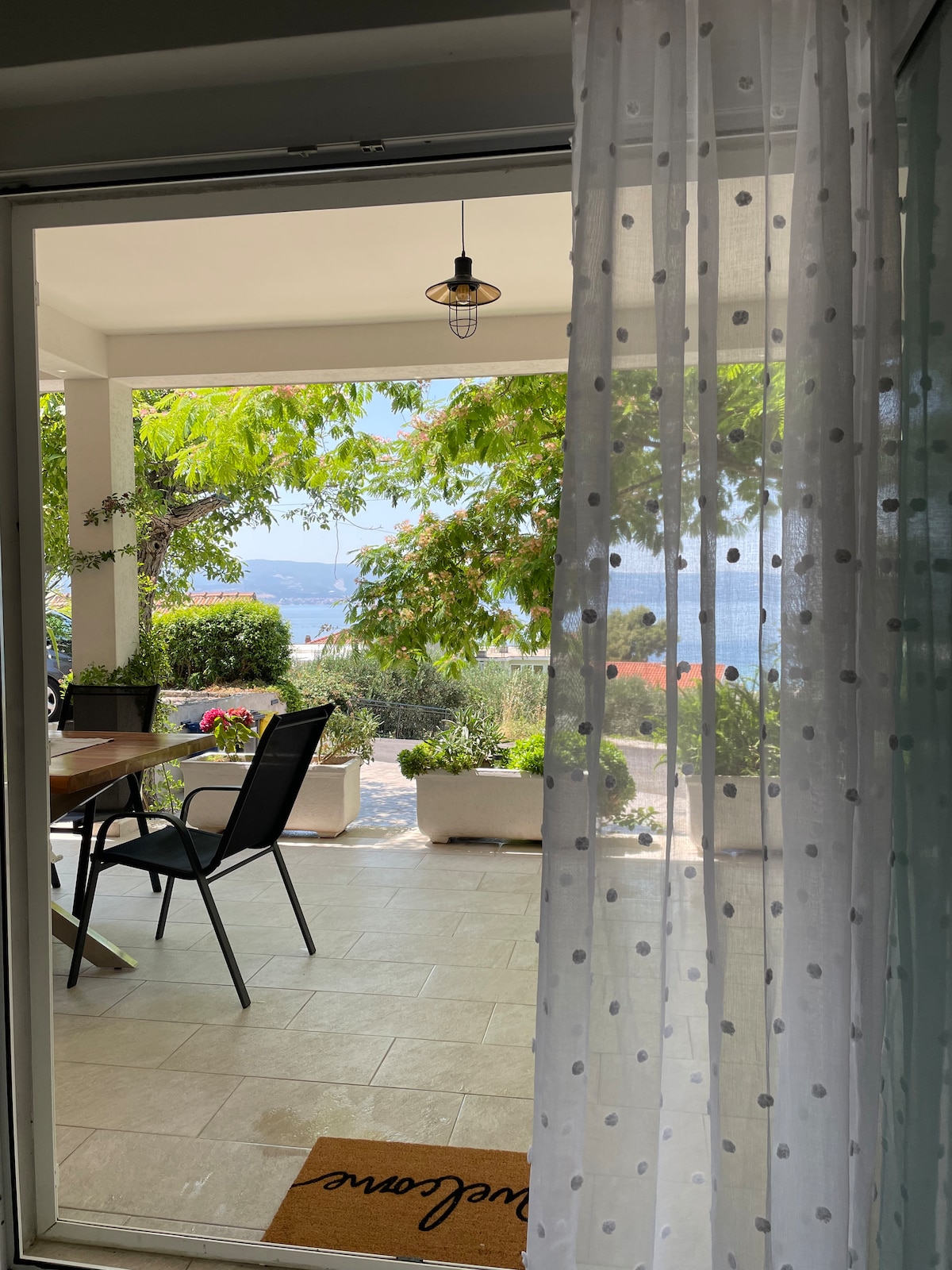 El apartamento tiene 100 m2 y está situado en el segundo piso de la casa. Tiene una hermosa vista del mar y de la isla de Brač. Consta de dos dormitorios con camas tamaño king, una cama supletoria, dos baños, cocina y sala de estar. El apartamento tiene aire acondicionado, 3 televisores inteligentes y una cocina equipada. Solo tiene que cruzar la carretera para llegar a una hermosa playa de arena y al mar. Cerca de la casa hay restaurantes, bares, una tienda, una panadería y una frutería. * Se proporciona una plaza de aparcamiento para cada apartamento.