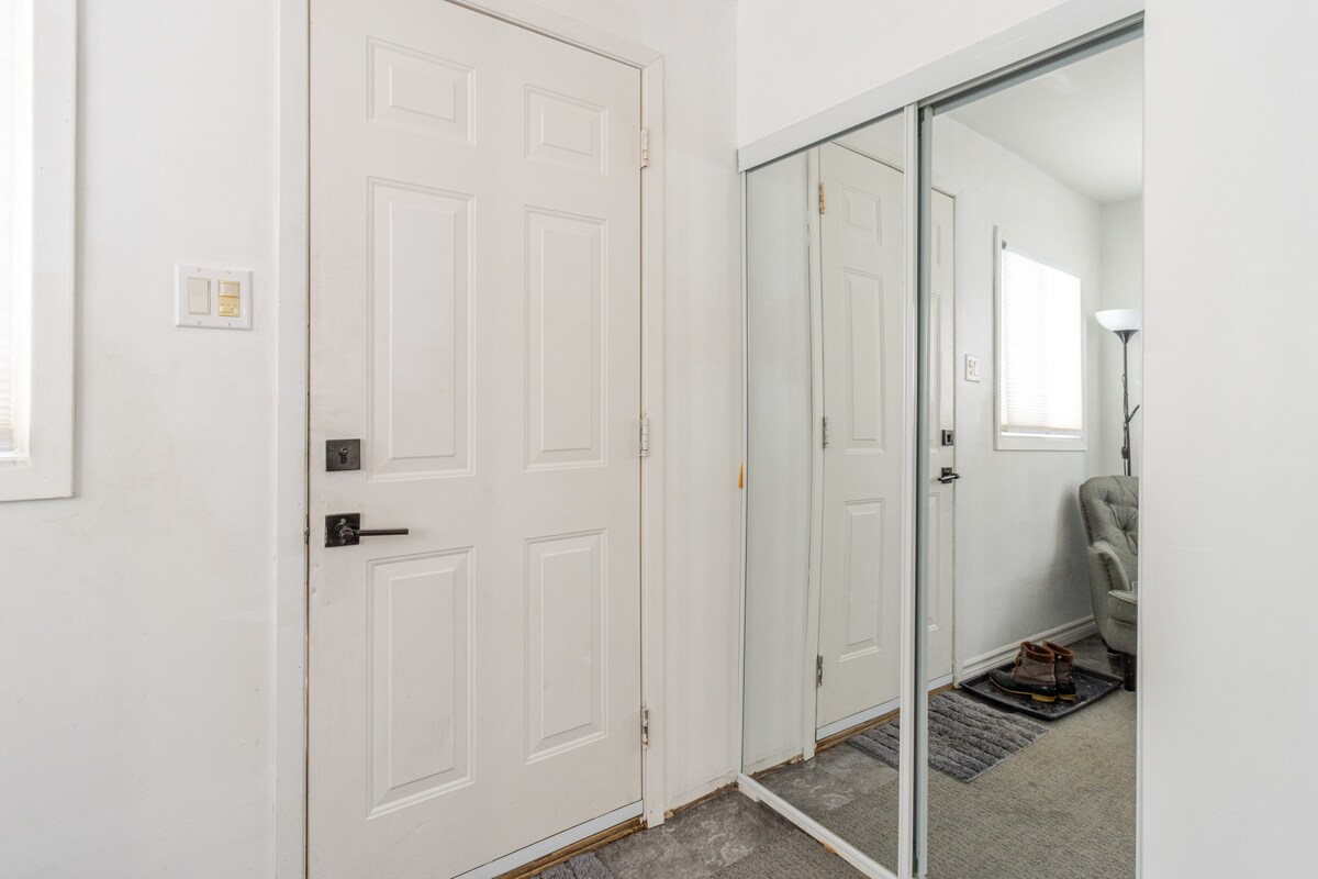 Acogedor y tranquilo Disfruta de una estancia tranquila y cómoda en esta suite privada de un dormitorio en el sótano. El espacio incluye un acogedor dormitorio, una sala de estar y una pequeña cocina, por lo que es ideal para estancias cortas o largas. Con una entrada privada y comodidades modernas, es el lugar perfecto para relajarse y descansar.
