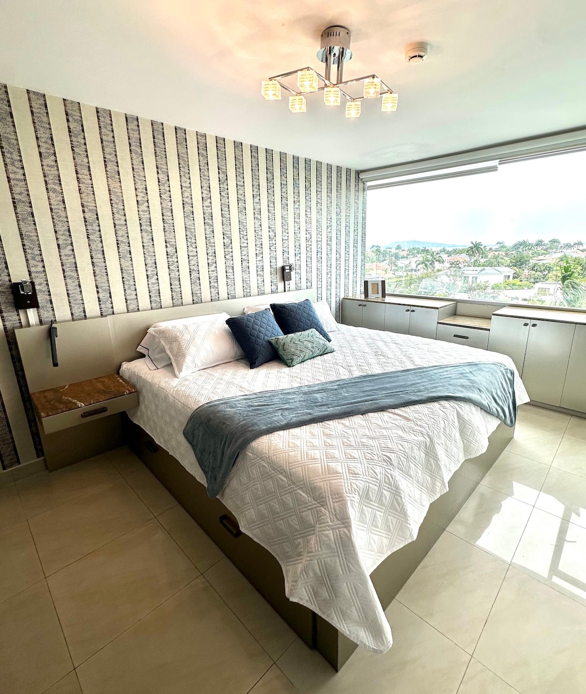 El apartamento ha sido completamente renovado. El blanco es el color predominante en el apartamento, lo que da una sensación de amplitud y libertad. La decoración es minimalista, con acabados de madera en el suelo, puertas de teca, camas y mesitas de noche. Las vistas son increíbles al cerro de Santa Ana, el río Guayas y la ciudad. Hay recepción 24 horas en el edificio y cámaras de seguridad en todas partes, zona y edificio muy seguros.