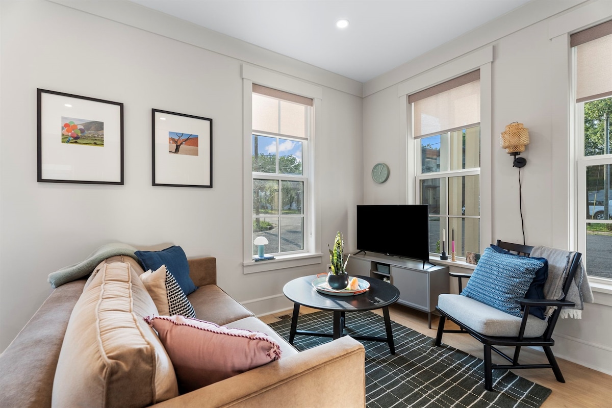 Enjoy the tiny experience without sacrificing the relaxations and comforts of home. Unwind in this quaint 1 bedroom 1 bath tiny farmhouse that’s equipped with full-sized appliances and tasteful amenities. The Farmhouse at Scout is nestled in Downtown Durham’s burgeoning Southside neighborhood and is extremely close to the best restaurants, shops, and activities that Durham has to offer. Major attractions: • DPAC: .8 mi • Durham Bulls: .8 mi • Farmer’s Market: 1.2 mi • Duke: 2.9 mi