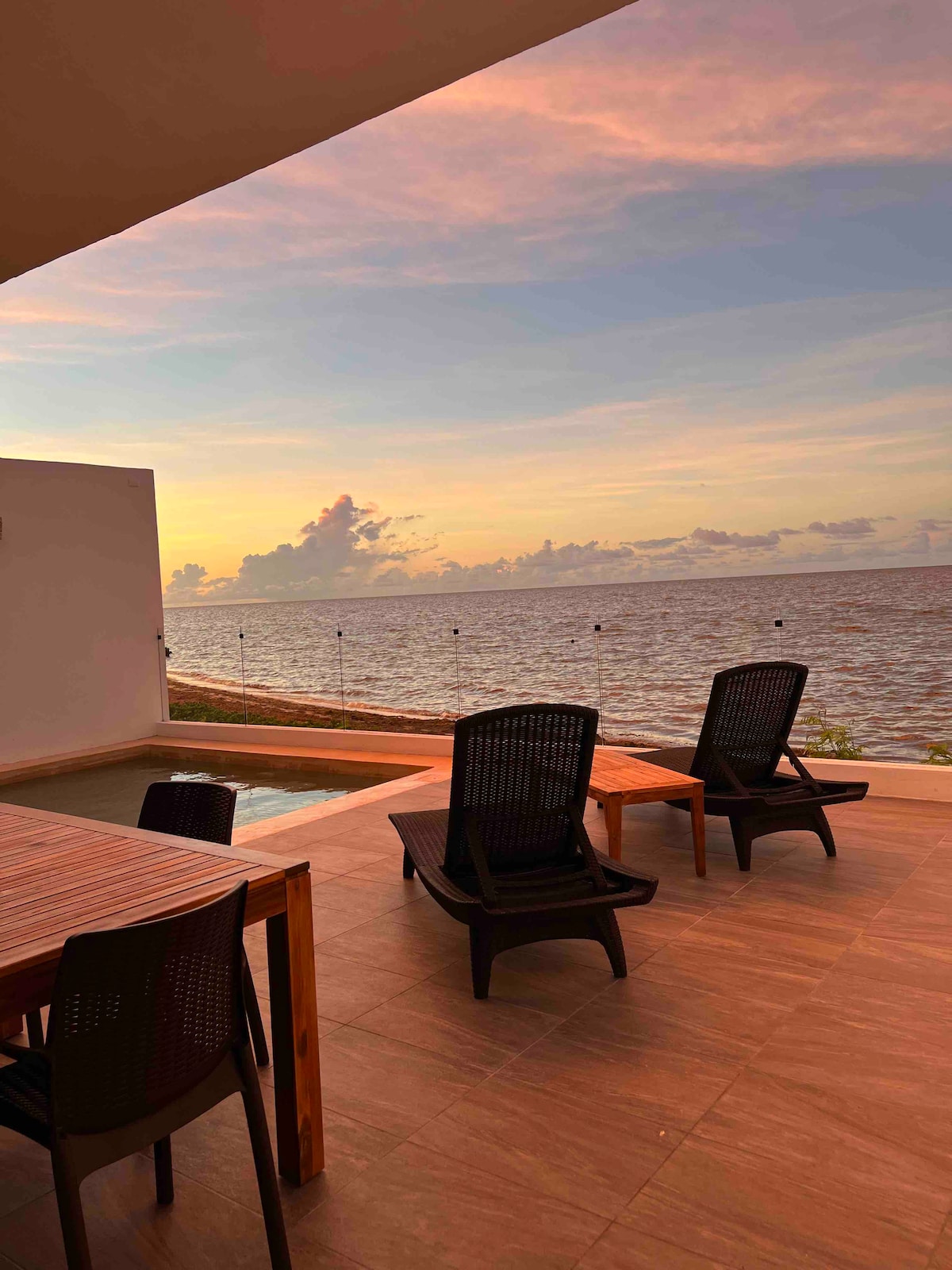 Casa estilo minimalista a la orilla de la playa, tiene tres habitaciones equipadas con AA, dos baños completos con agua fría y caliente; cocina, estancia con aire acondicionado y una piscina con vista al mar. Podrás disfrutar de la tranquilidad de este bello puerto de Dzilam de Bravo. La casa está situada a tan solo 500 metros del puerto. En el lugar podrás encontrar todos los servicios, pesca, paseos en lancha, deliciosa comida en diferentes restaurantes, tiendas, farmacias, iglesias, etc.